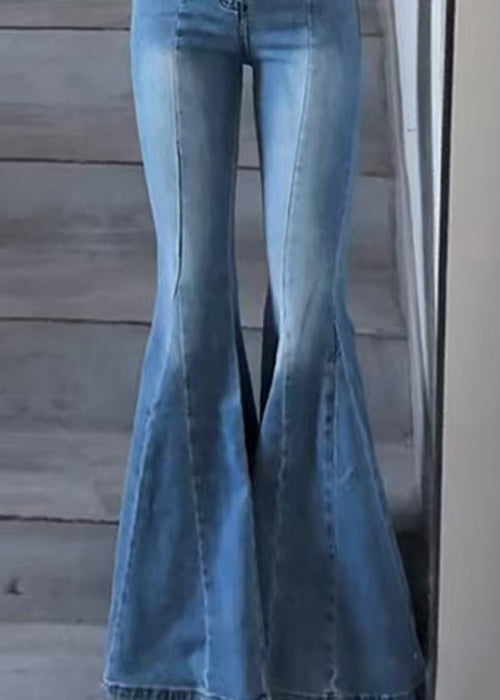Slim Fit Blue Pockets High Waist Denim Flared Trousers Spring