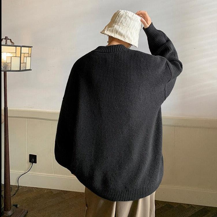 Discover a snug addition to your wardrobe with this cozy sweater. Crafted from a soft touch blend of acrylic and spandex, it offers both comfort and style. Featuring long sleeves, a mock neck, and an embossing print on the front, it effortlessly embodies the trendy soft boy aesthetic.