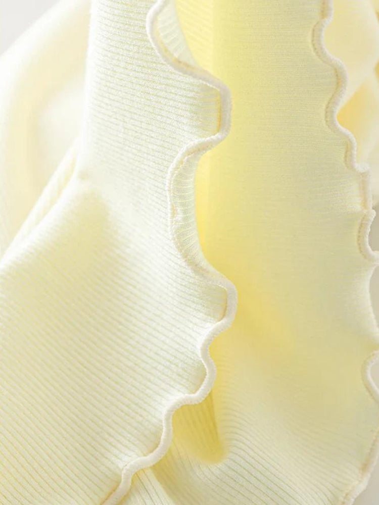 - Lettuce edge detail at neck & sleeve & hem