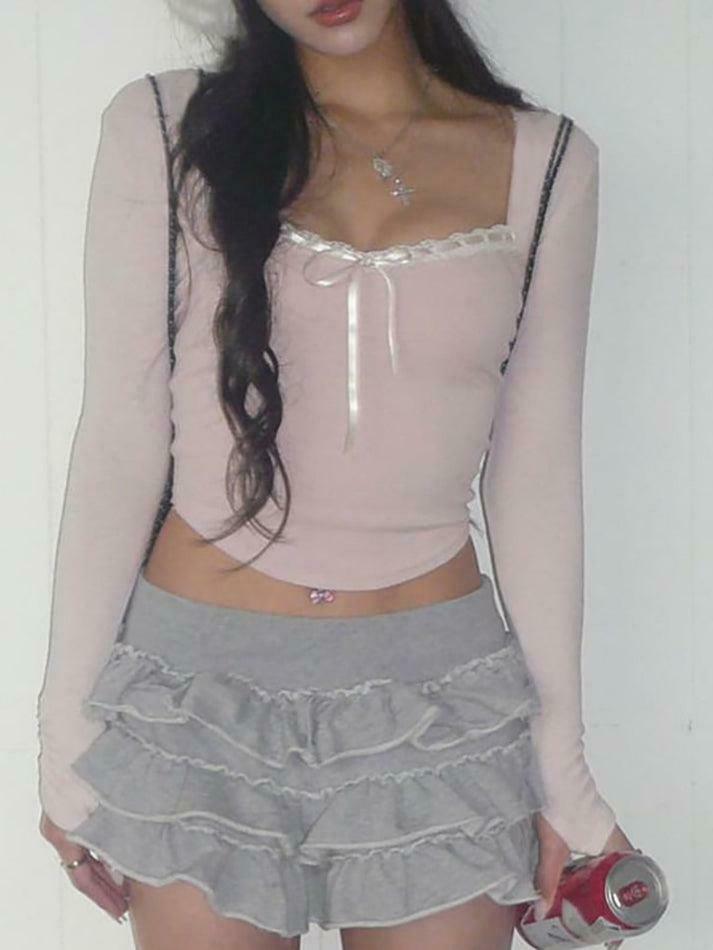 Casual Outfits Square Neck Lace Trim Crop Top: Y2k Coquette, – Outfit Ideas High-quality product featuring prom dresses, spring outfits, business casual outfits and more. Modern design that fits the latest trends. Premium materials ensure durability and comfort. Order now for special offers! Product designed with attention to every detail. Suitable for all occasions and personal styles.