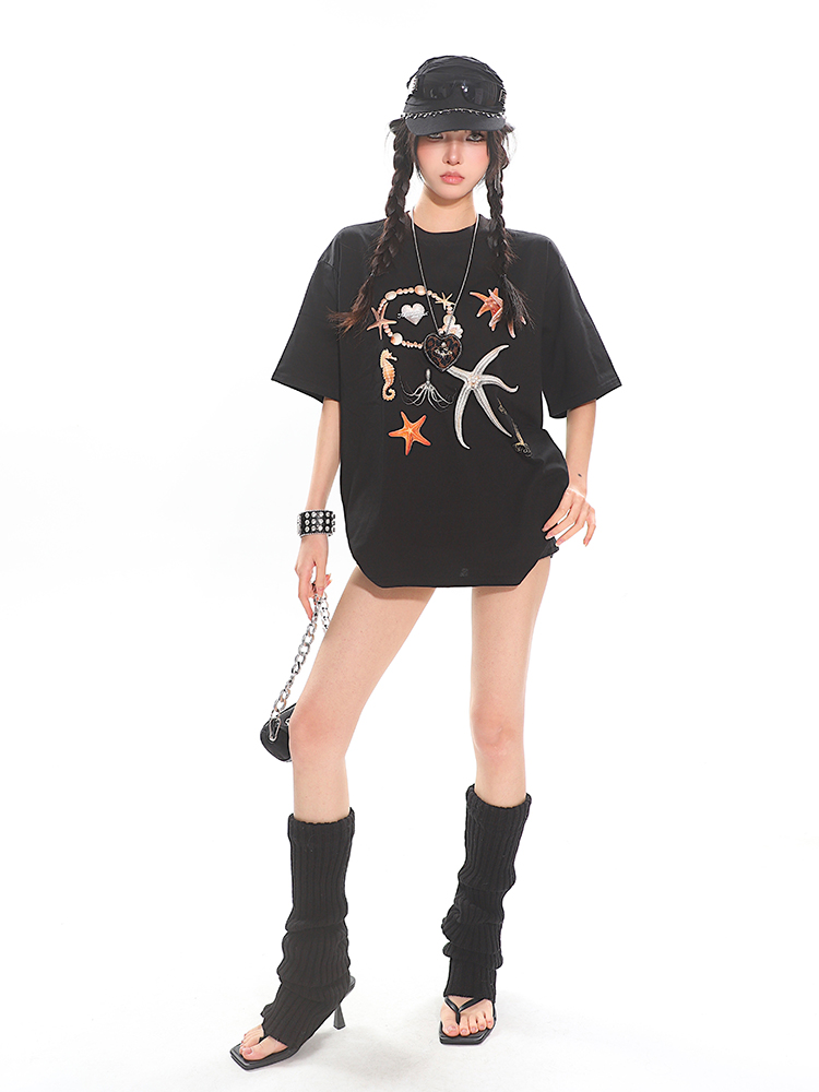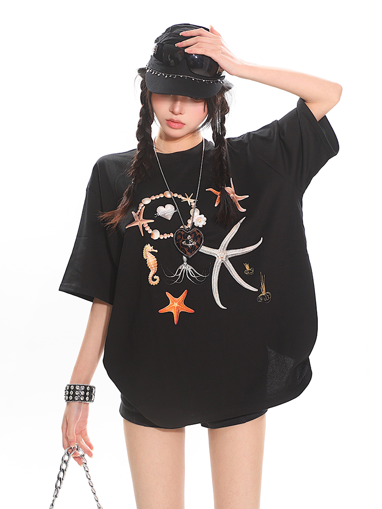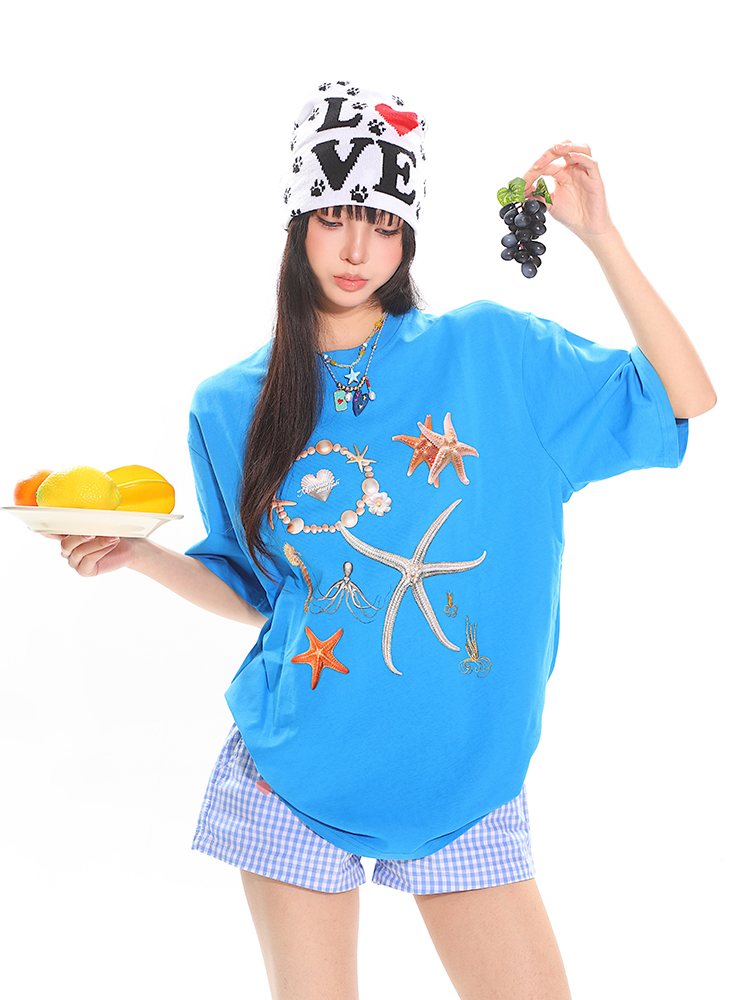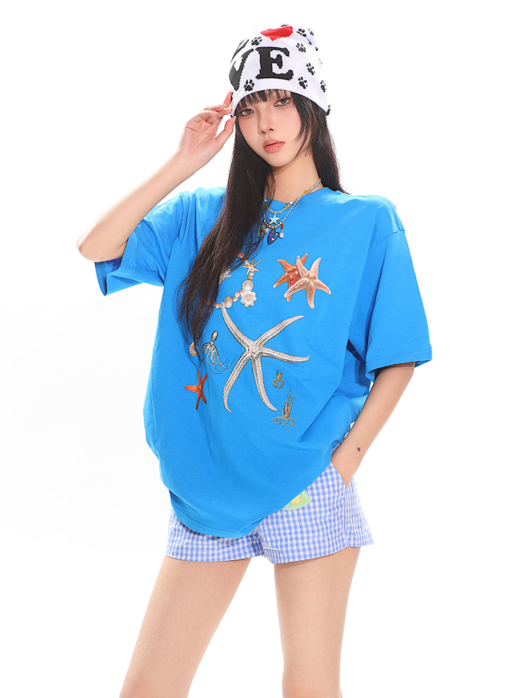 Starfish Shell Basic Loose Couple Pullover Casual Short Sleeve Top Y2K High-quality product featuring prom dresses, spring outfits, business casual outfits and more. Modern design that fits the latest trends. Premium materials ensure durability and comfort. Order now for special offers! Product designed with attention to every detail. Suitable for all occasions and personal styles.