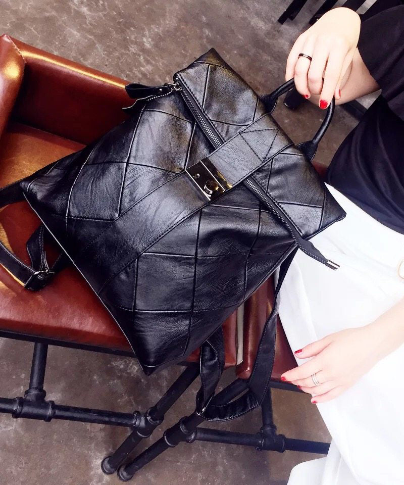 Style Black Plaid Large Capacity Faux Leather Versatile Backpack Bag