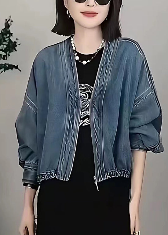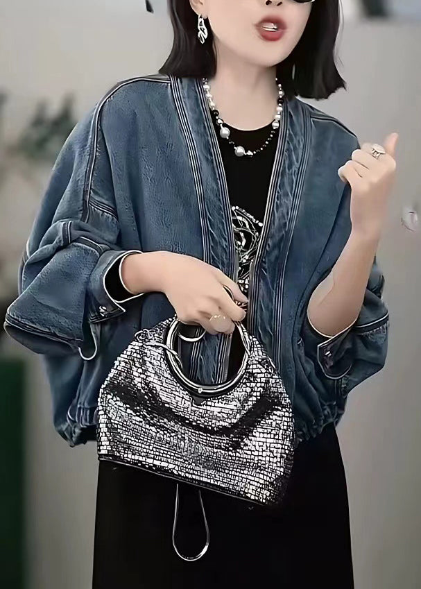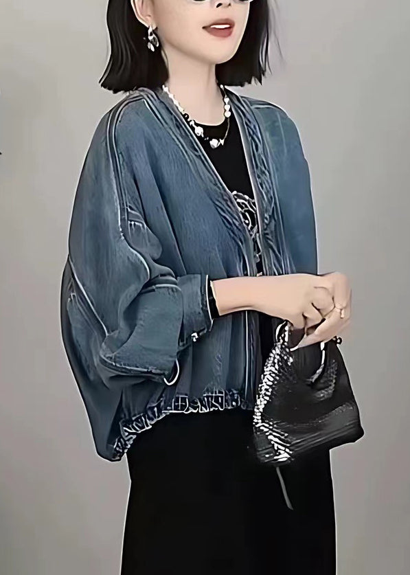 Style Blue Oversized Denim Cardigan Batwing Sleeve