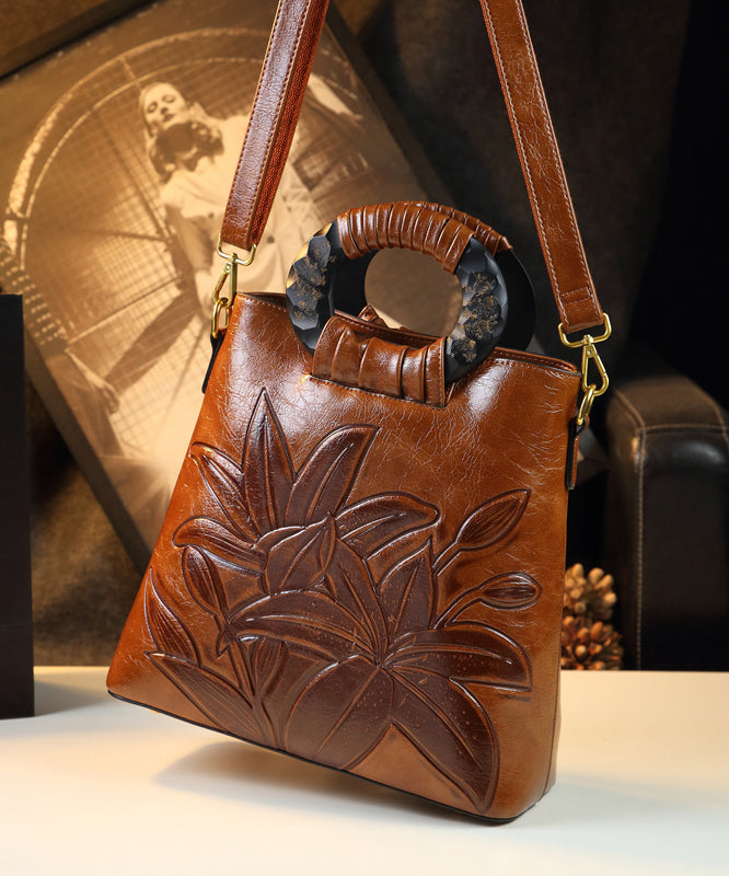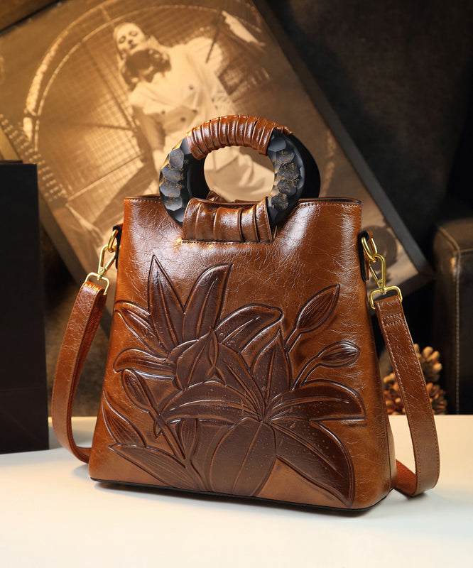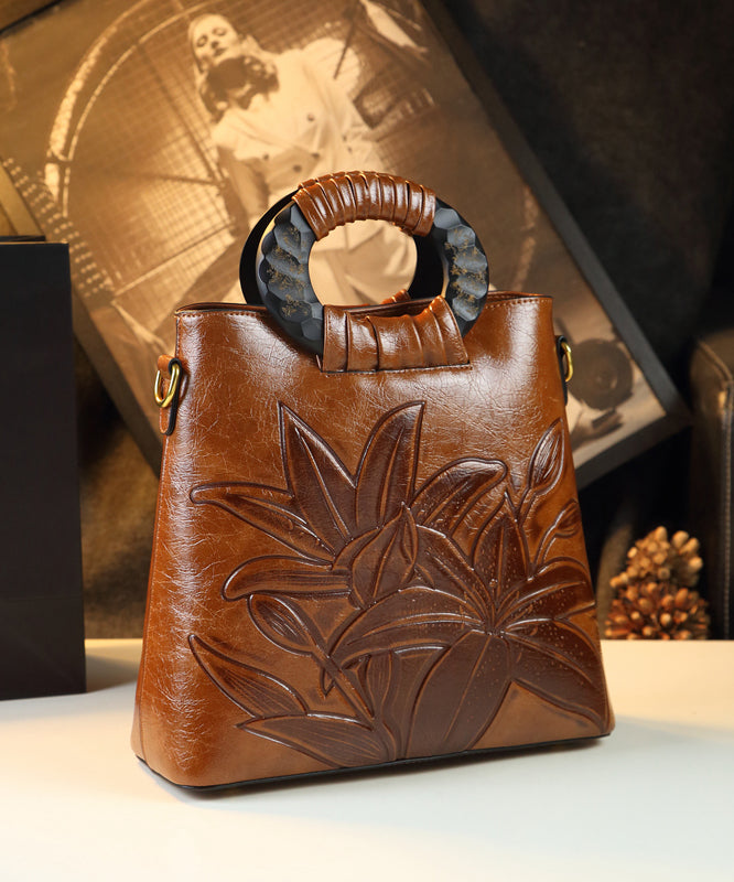 Style Brown Embossed Large Capacity Faux Leather Tote Handbag