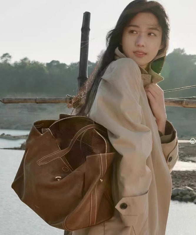 Style Brown Large Capacity Calf Leather Satchel Handbag