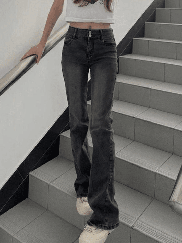 ‘Le Jean skinny évasé à la cheville vintage de chez Y2K Store