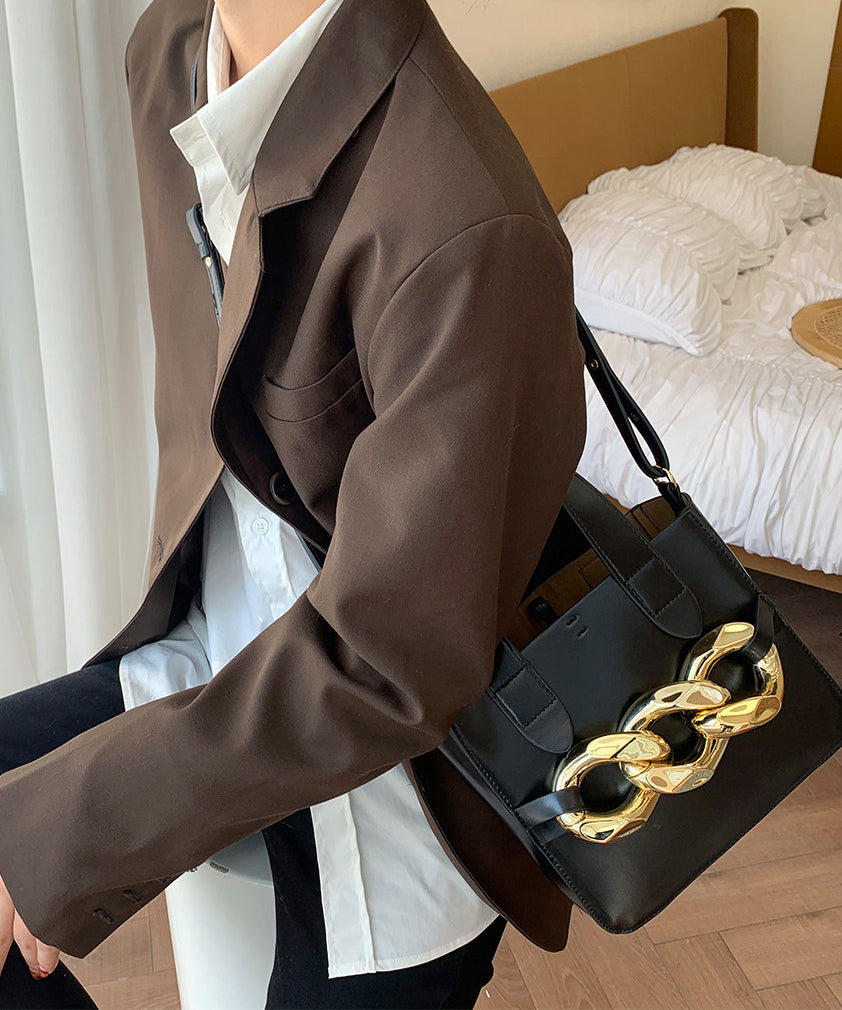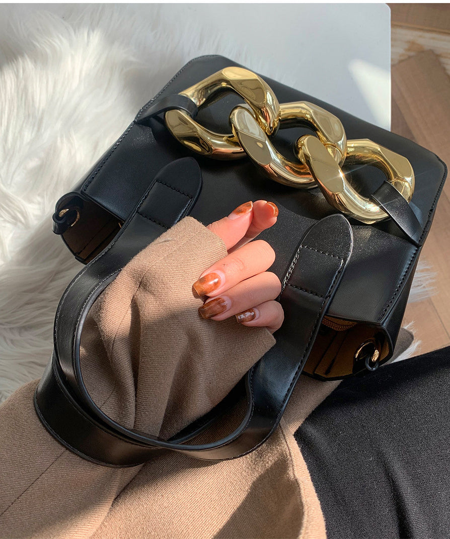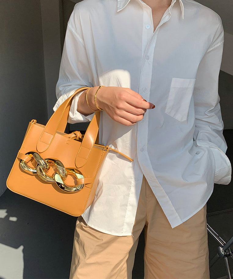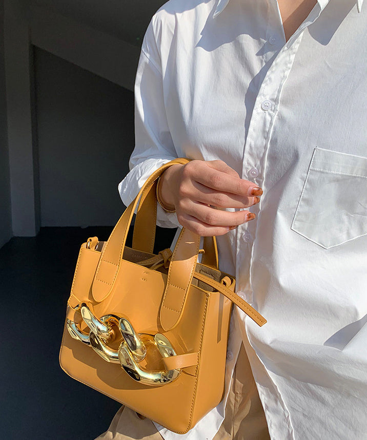 Style Yellow Chain Linked Faux Leather Tote Mini Bag