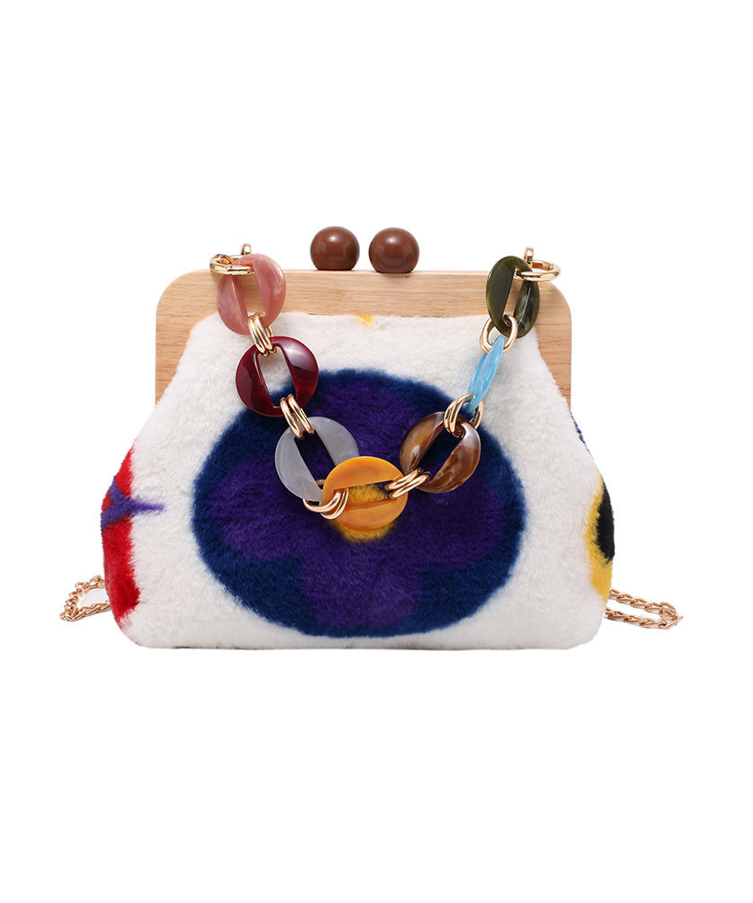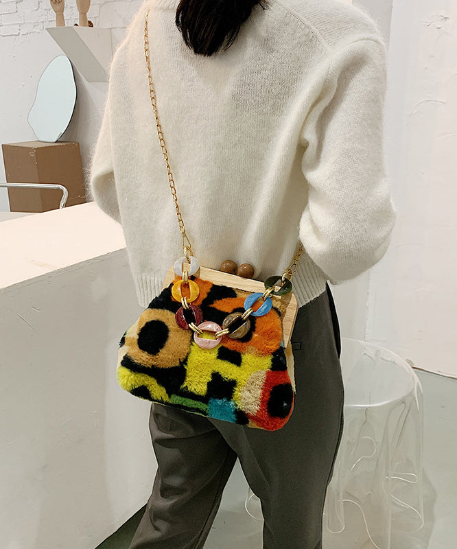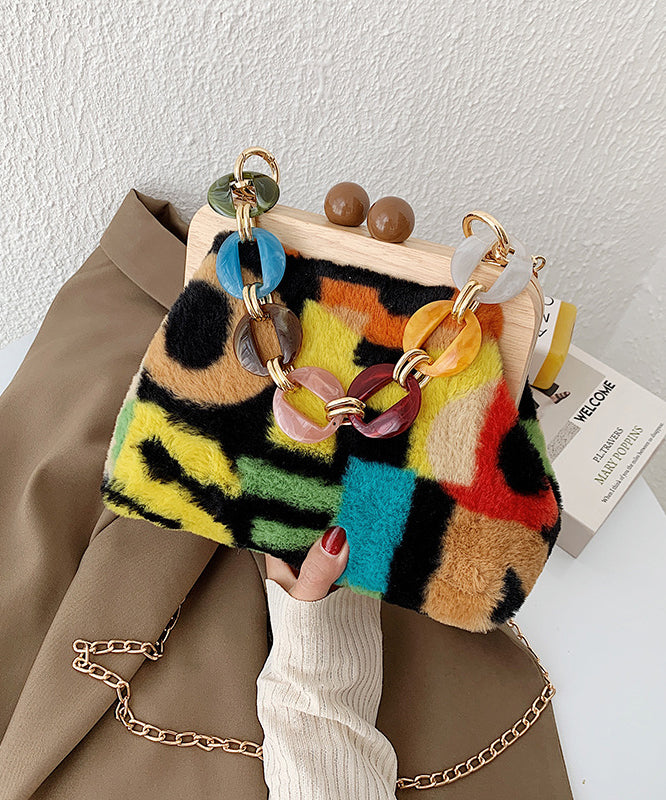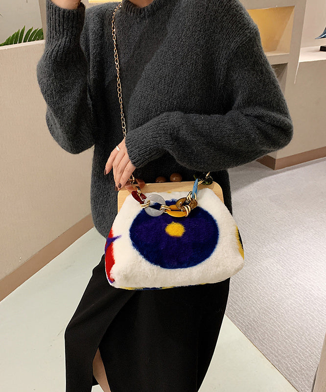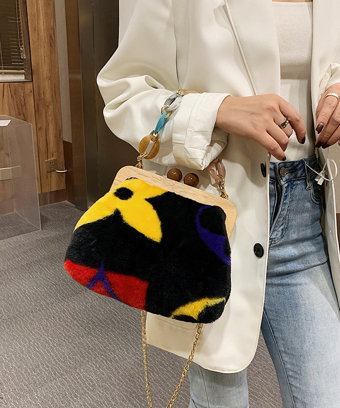 Stylish Acrylic Fuzzy Fur Fluffy Patchwork Messenger Bag