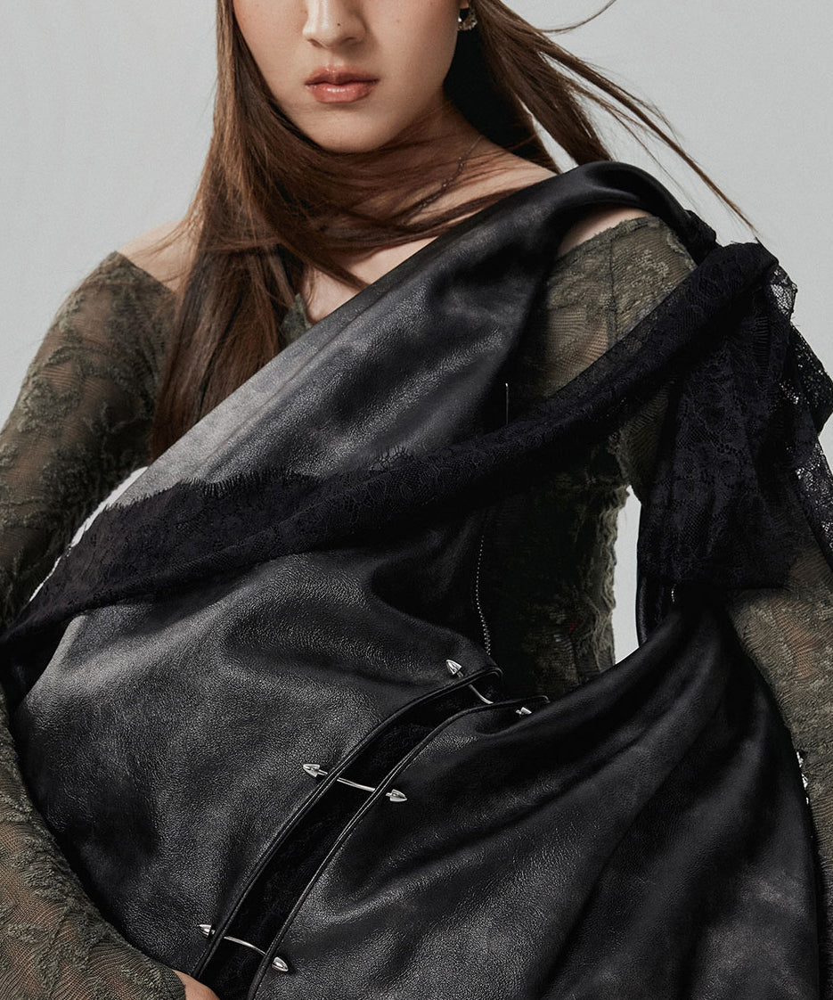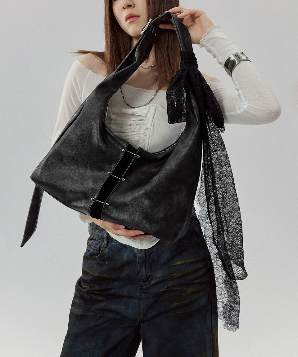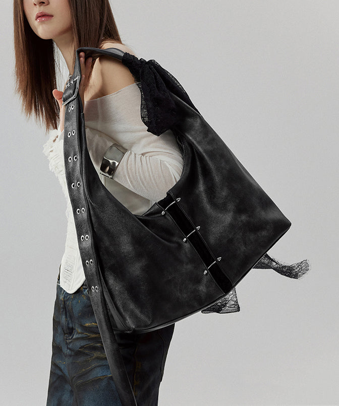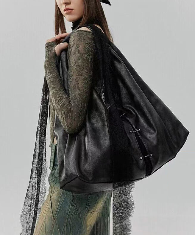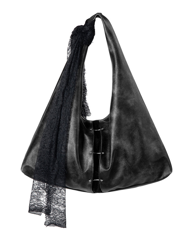 Stylish Black Lace Large Capacity Faux Leather Satchel Handbag
