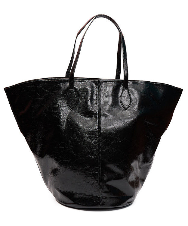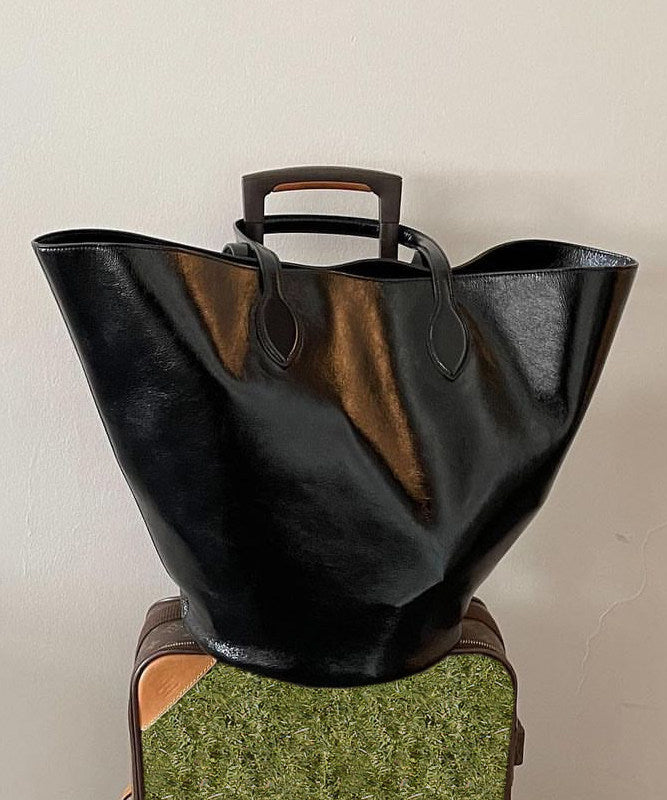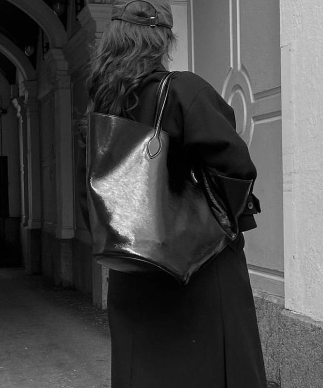 Stylish Black Large Capacity Faux Leather Bucket Bag
