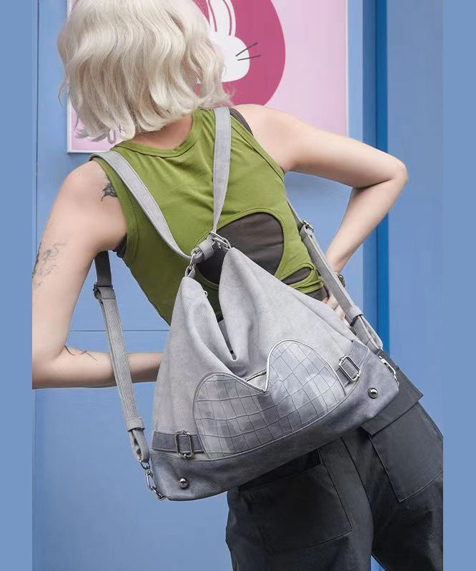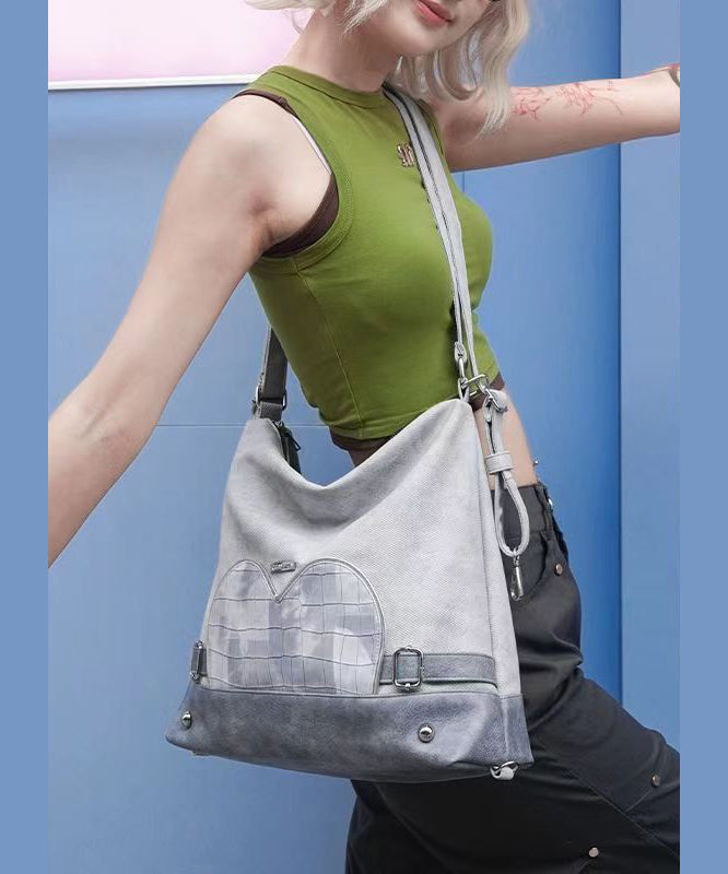 Stylish Grey Faux Leather Versatile Satchel Bag Handbag