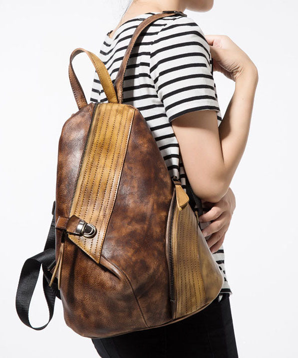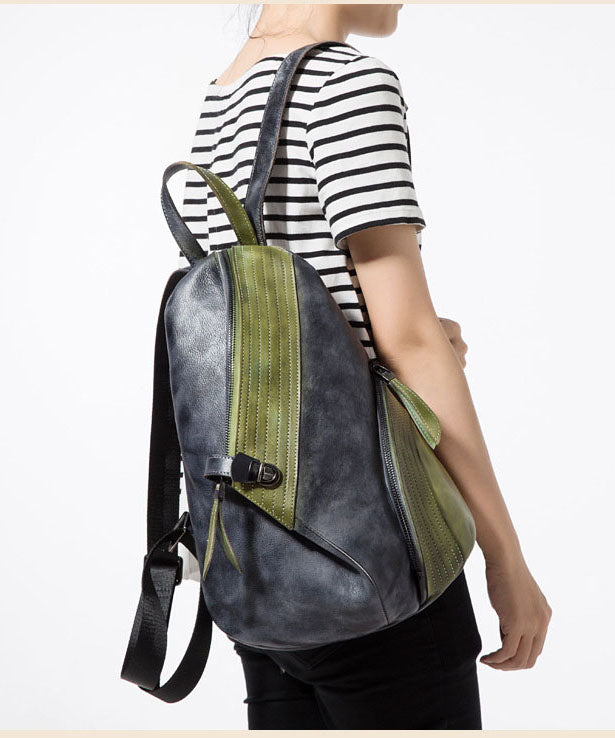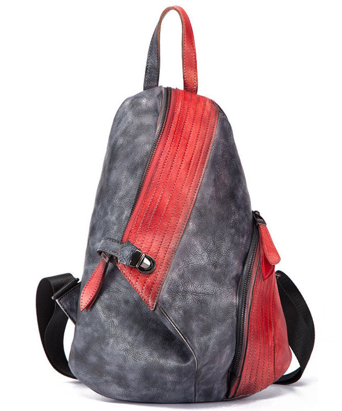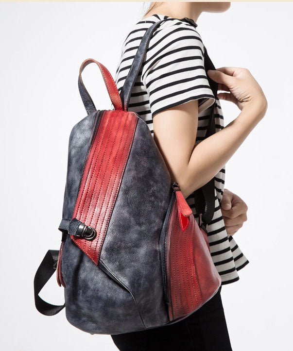 Stylish Red Black Patchwork Calf Leather Backpack Bag