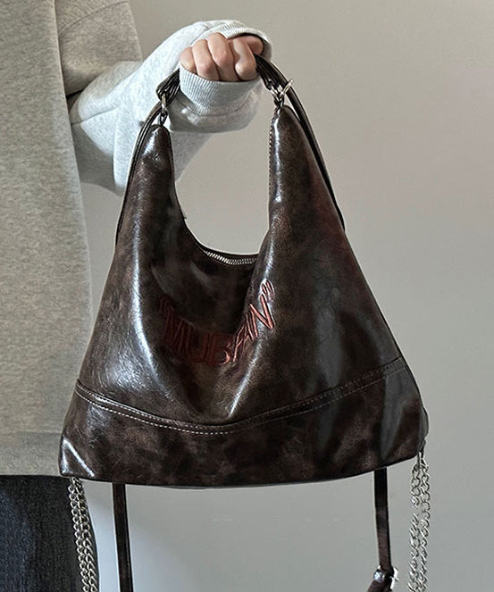 Stylish Versatile Coffee Faux Leather Satchel Bag Handbag