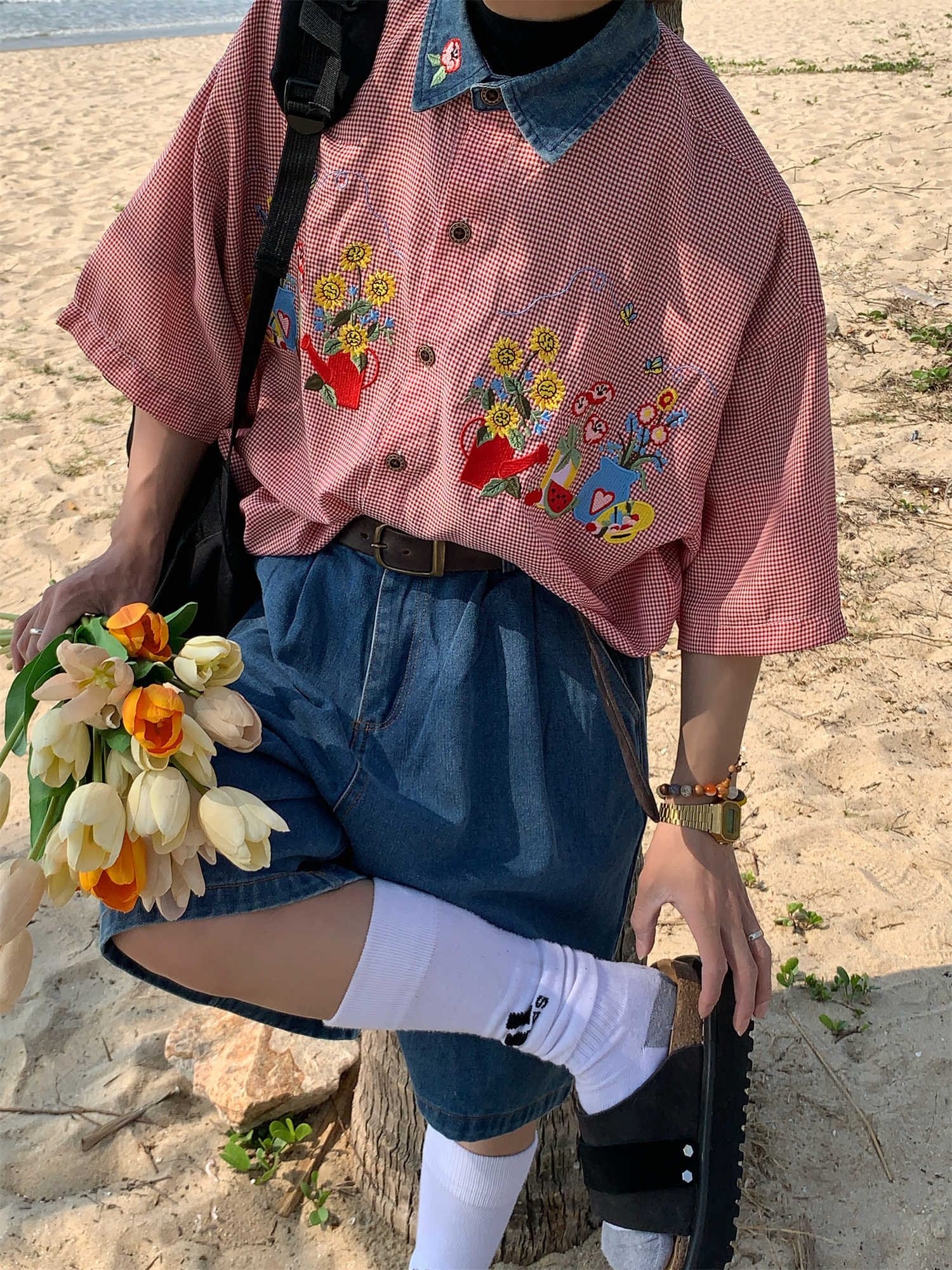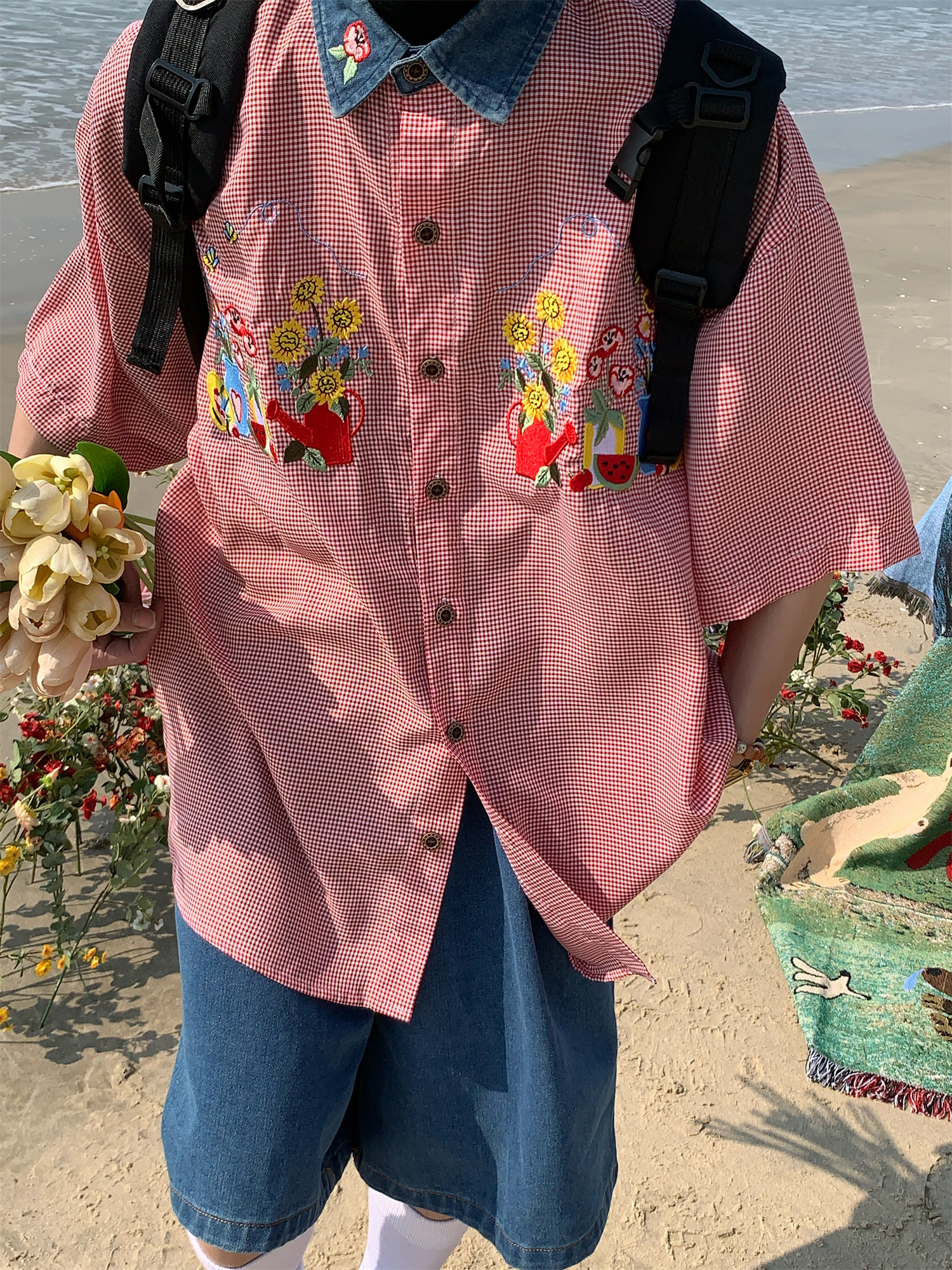 Step into summer with our Summer Retro Floral Embroidery Short Sleeve Shirt featuring a trendy denim collar, perfect for embracing that 90s Y2K style. This stylish couple plaid top is designed for a relaxed fit, making it ideal for casual outings or laid-back weekends. With its vibrant floral embroidery and unique denim accents, this shirt adds a touch of nostalgia to your wardrobe while ensuring maximum comfort and versatility. Don’t miss out on this fashion staple—add it to your cart today!