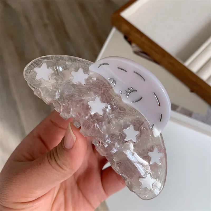 Shimmer designBring celestial vibes to your look with these Sun & Stars Hair Claws. Designed with cosmic charm, they’re perfect for keeping your hair up in style—day or night.