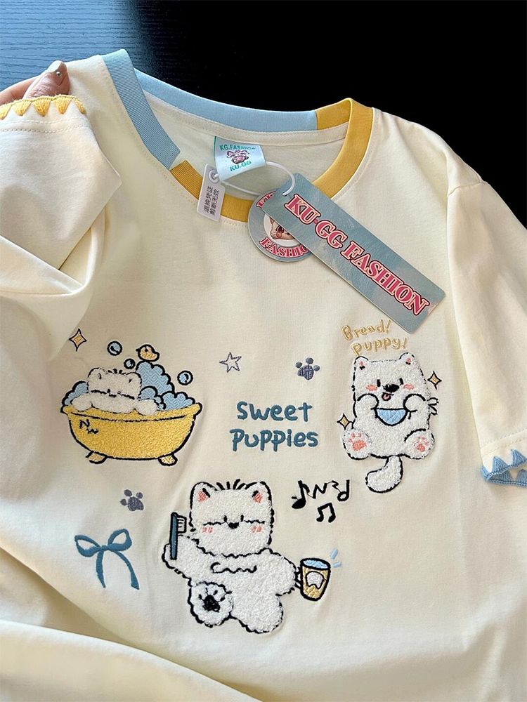Embroidered Cute Cat Short Sleeve Women Summer MuHave High-quality product featuring prom dresses, spring outfits, business casual outfits and more. Modern design that fits the latest trends. Premium materials ensure durability and comfort. Order now for special offers! Product designed with attention to every detail. Suitable for all occasions and personal styles.