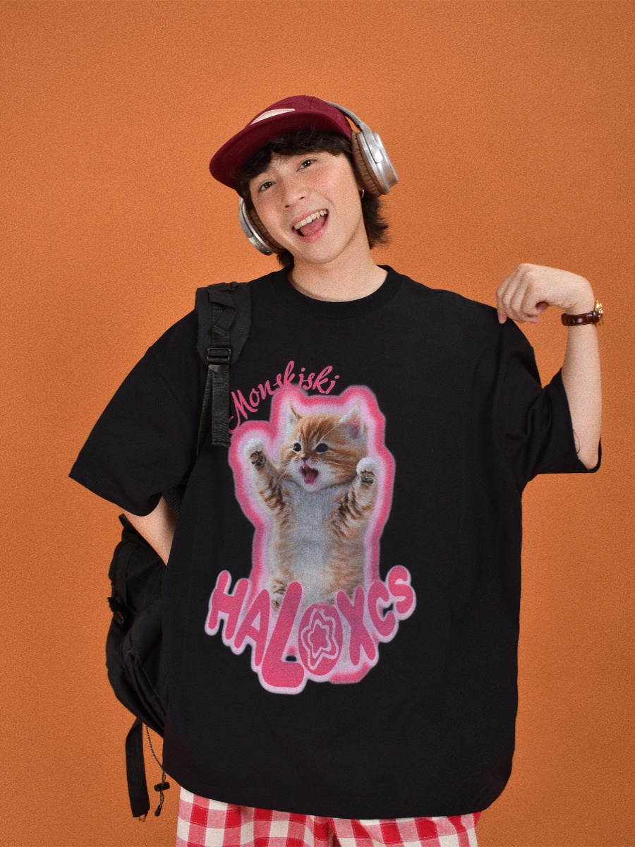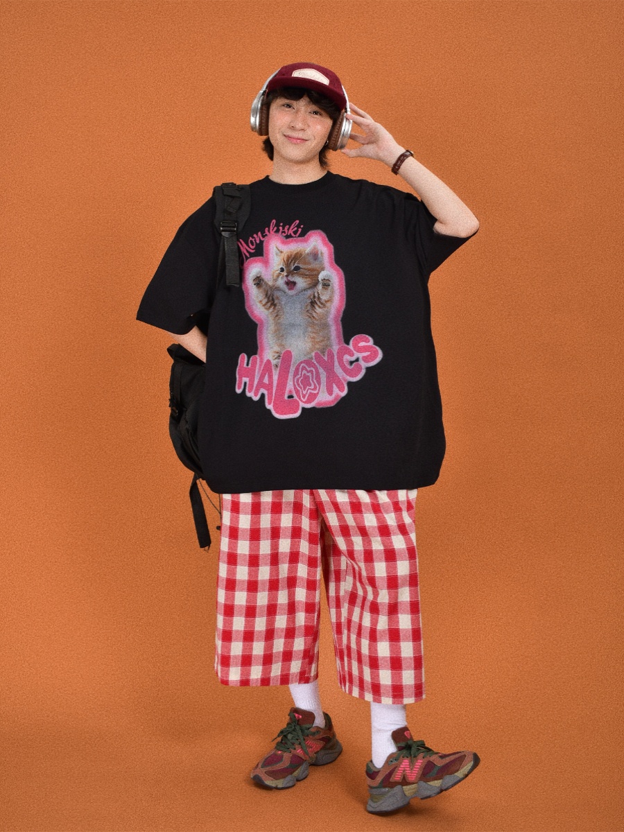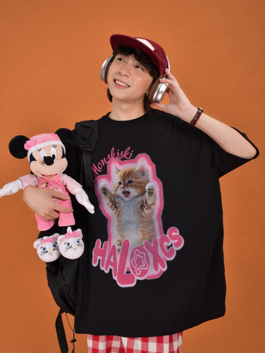 Cute Cat Print Oversized Short Sleeve Summer Outfit Ideas for Couples, Y2k High-quality product featuring prom dresses, spring outfits, business casual outfits and more. Modern design that fits the latest trends. Premium materials ensure durability and comfort. Order now for special offers! Product designed with attention to every detail. Suitable for all occasions and personal styles.