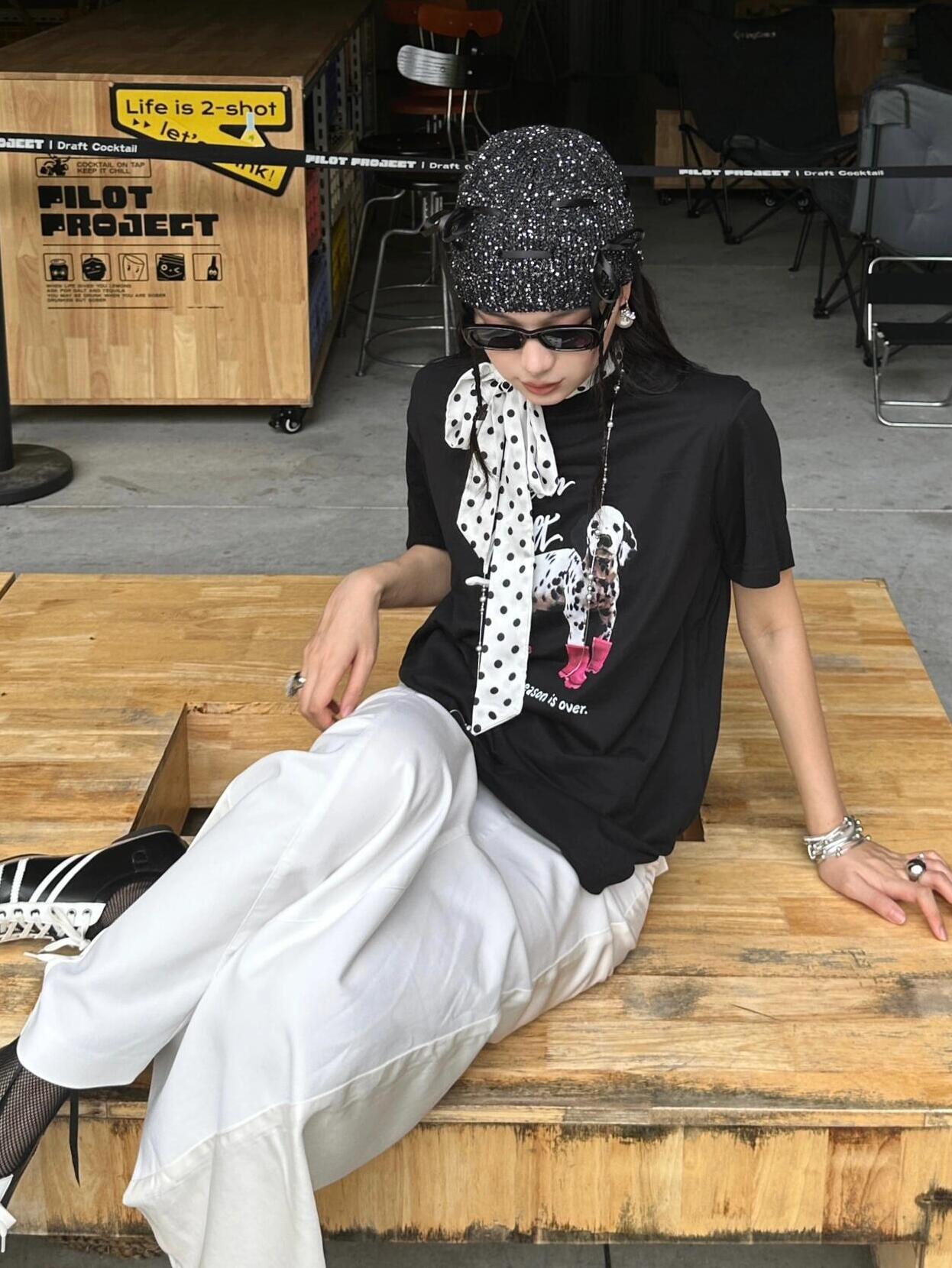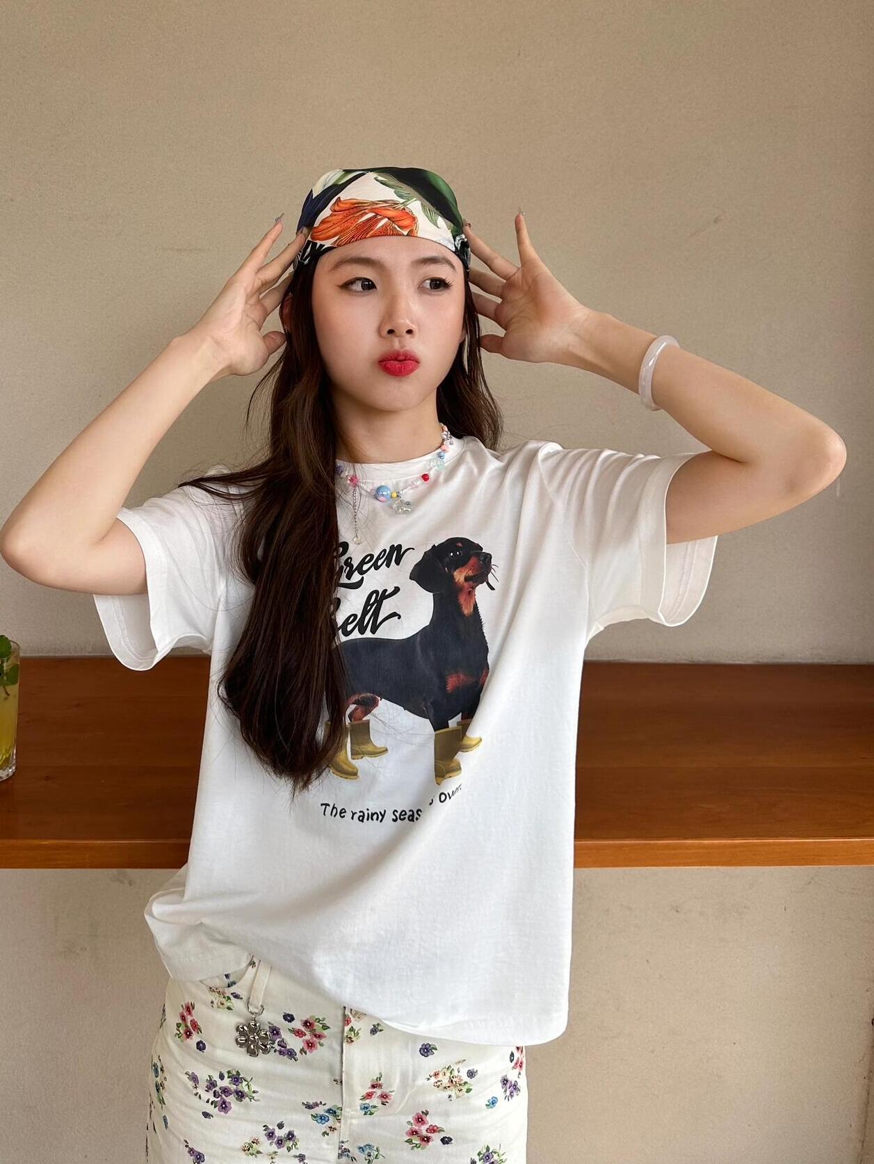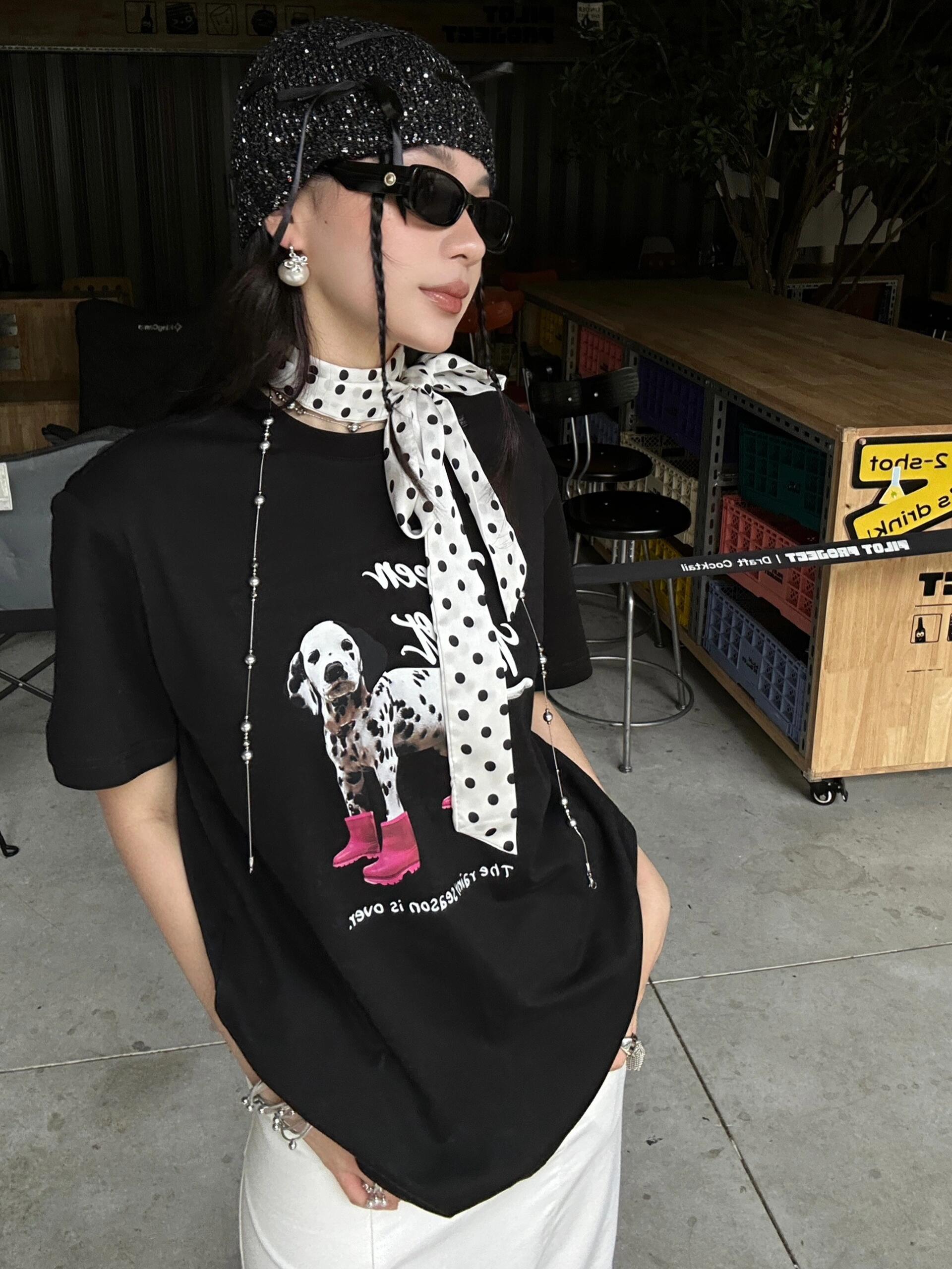 Korean Casual Loose Fit Dog Print Top: Summer Outfit Ideas F – Outfit Ideas