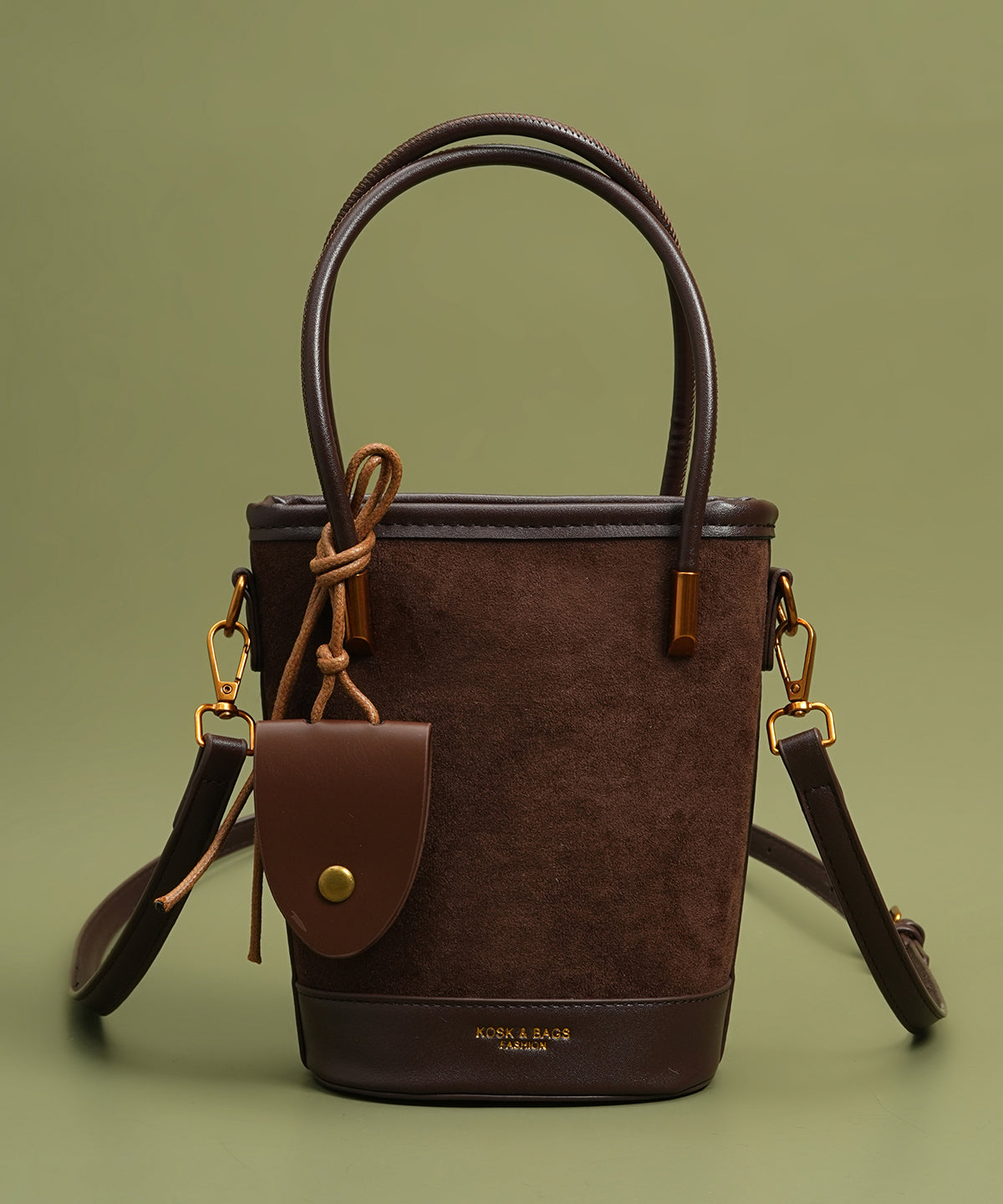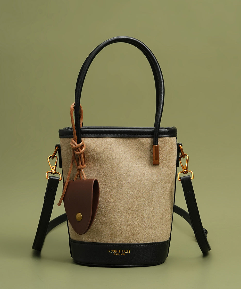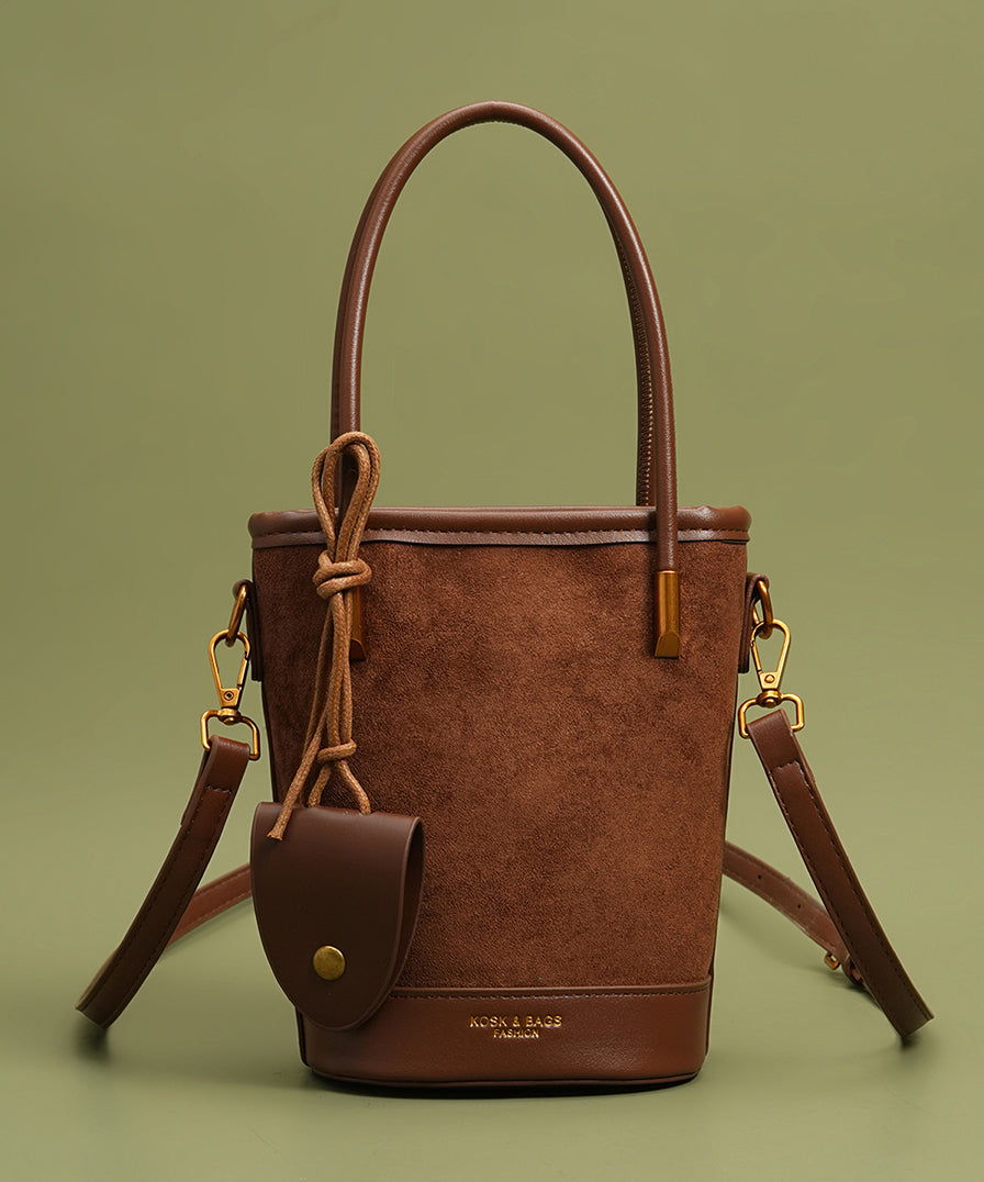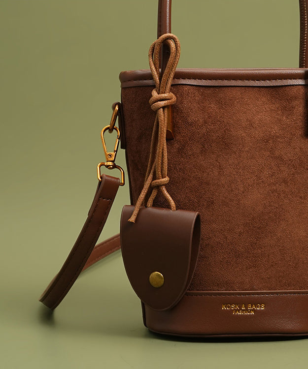 Unique Brown Large Capacity Patchwork Faux Leather Bucket Bag