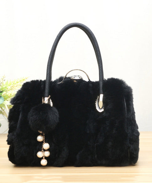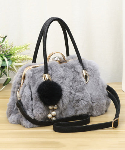 Unique Grey Versatile The Rabbit Wool Tote Handbag