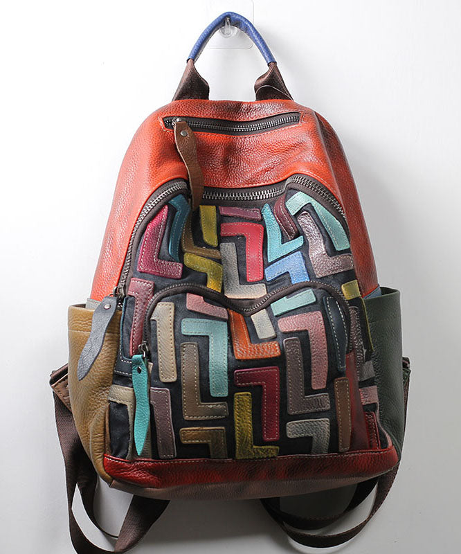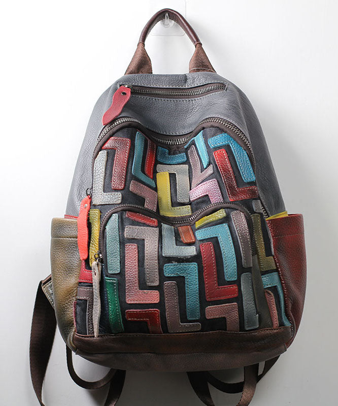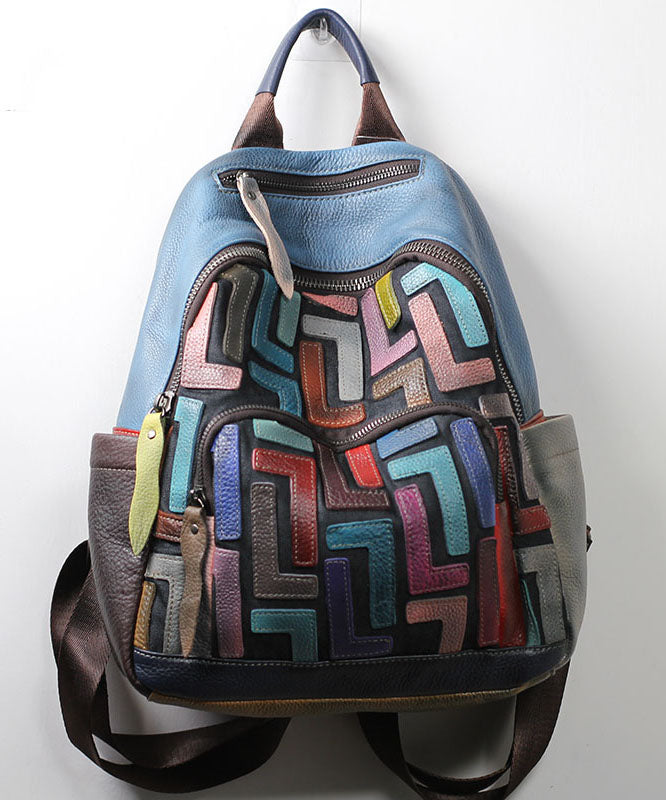 Unique Light Green Patchwork Applique Calf Leather Backpack Bag