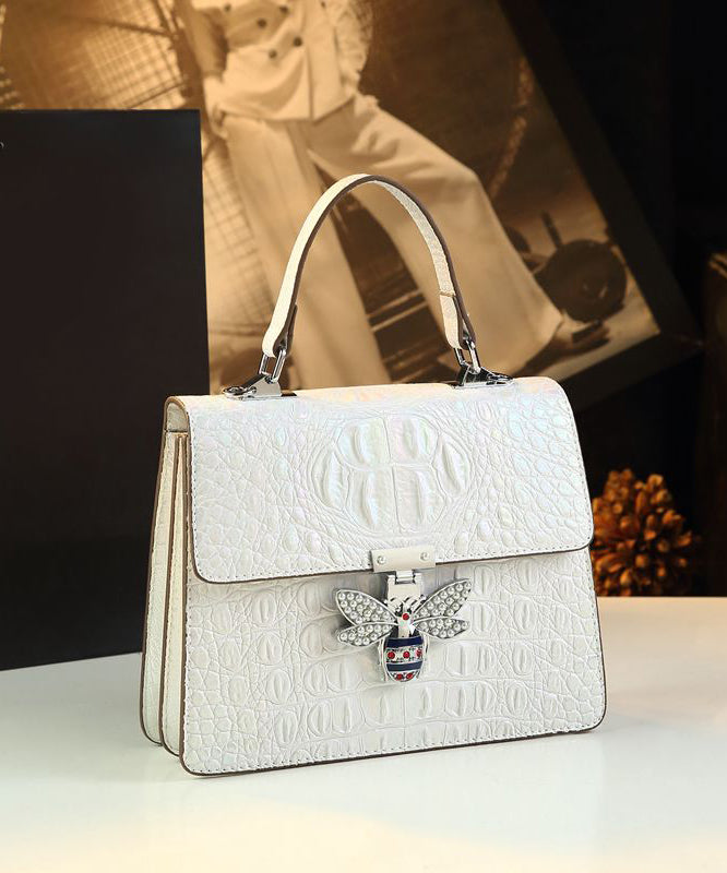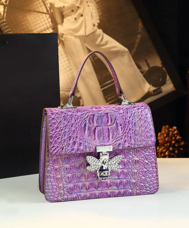 Unique Purple Butterfly Embossed Calf Leather Tote Satchel Handbag