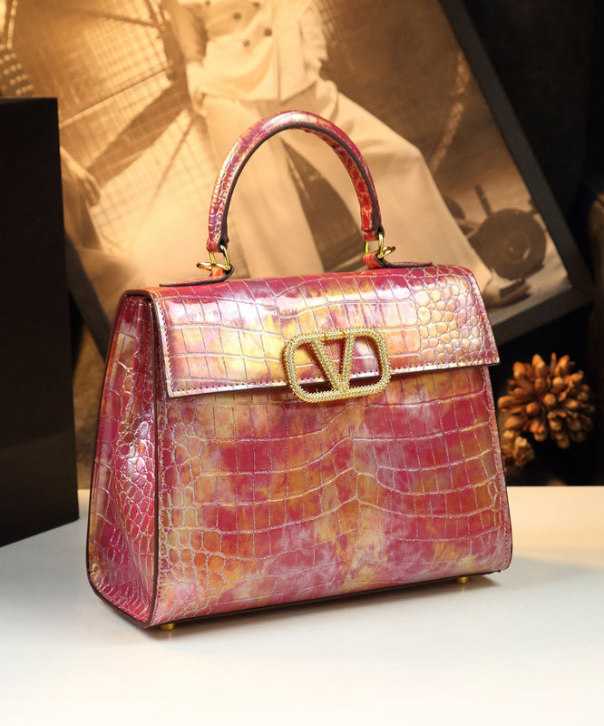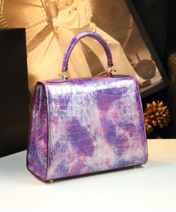 Unique Purple Embossed Solid Durable Calf Leather Tote Handbag