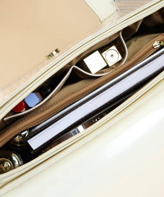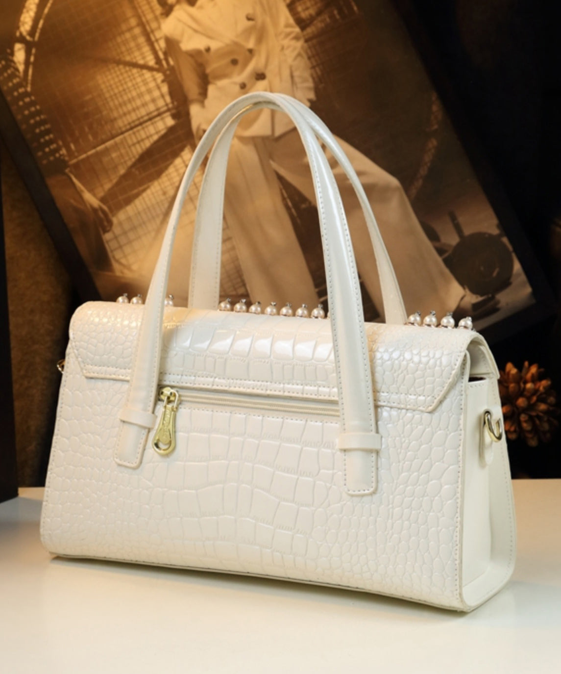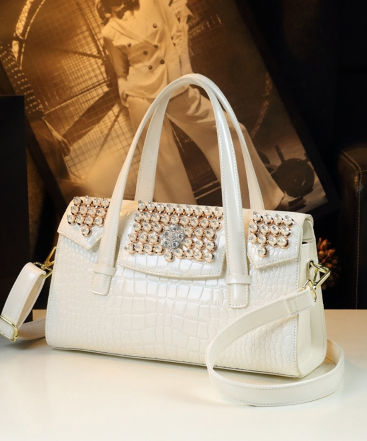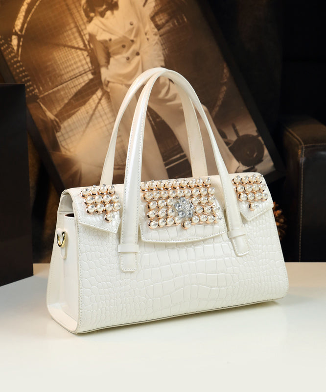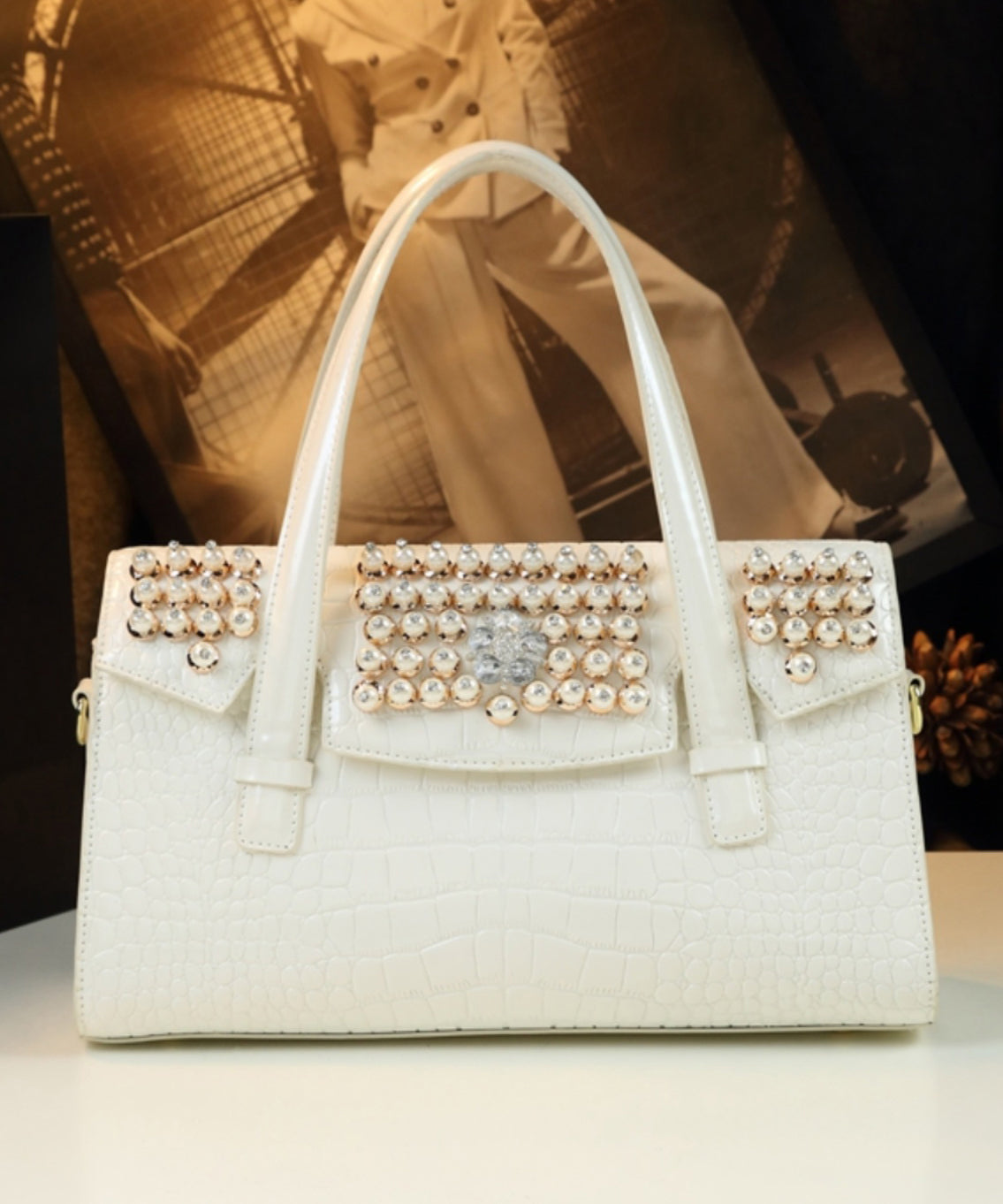 Unique White Alligator Pattern Zircon Faux Leather Tote Handbag