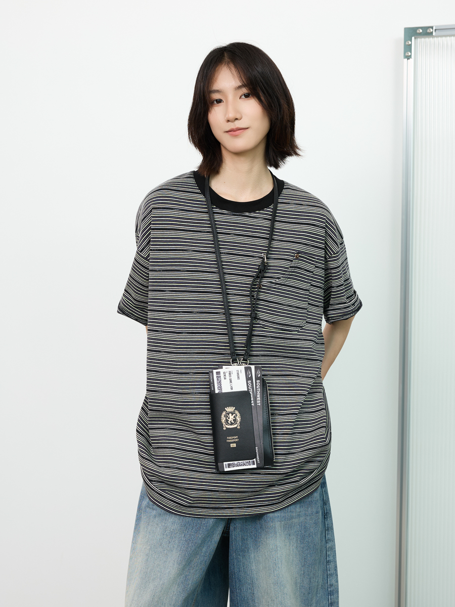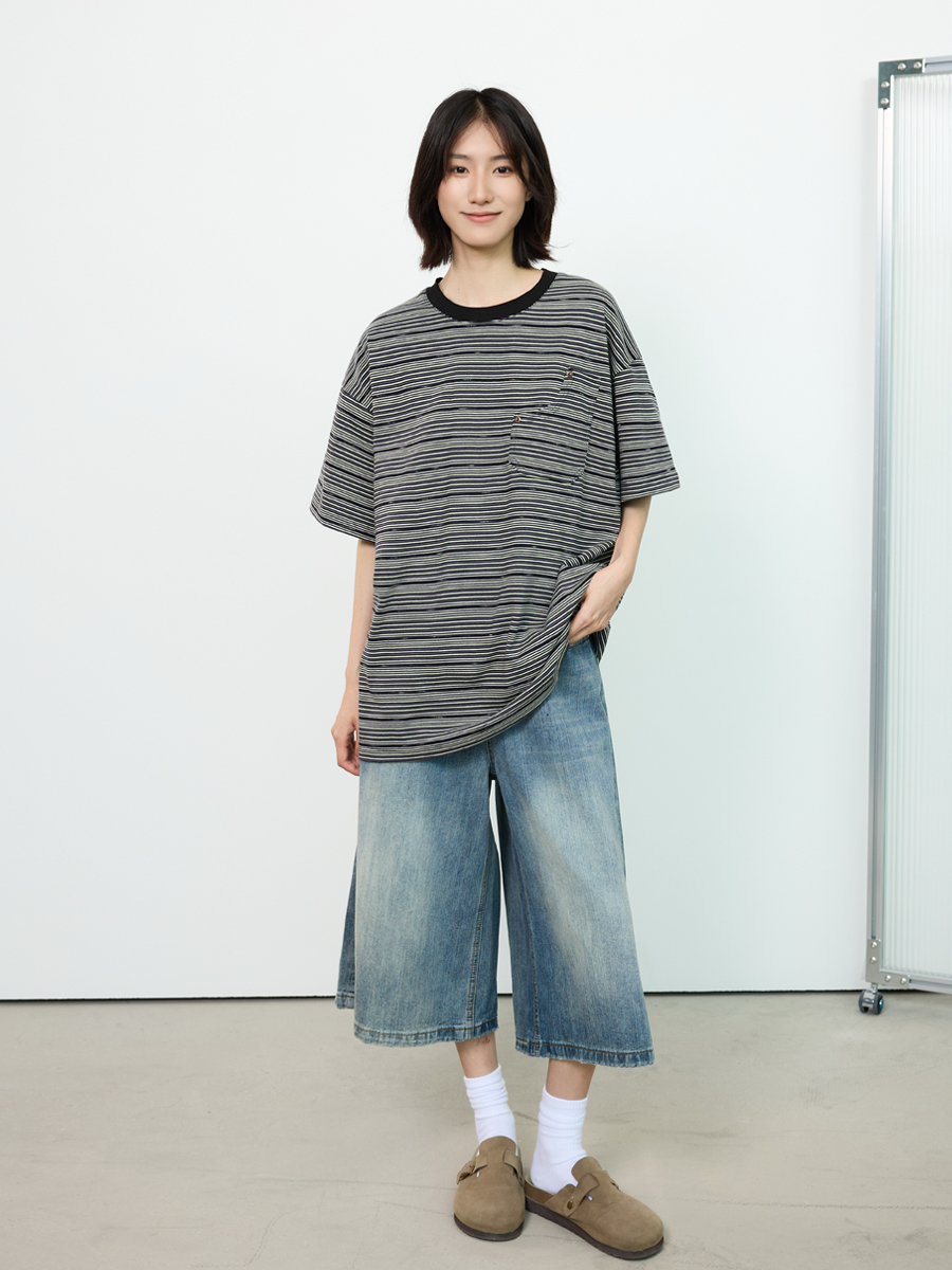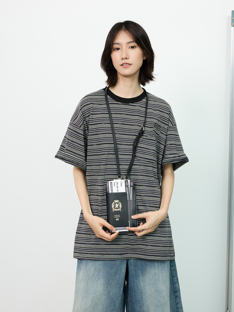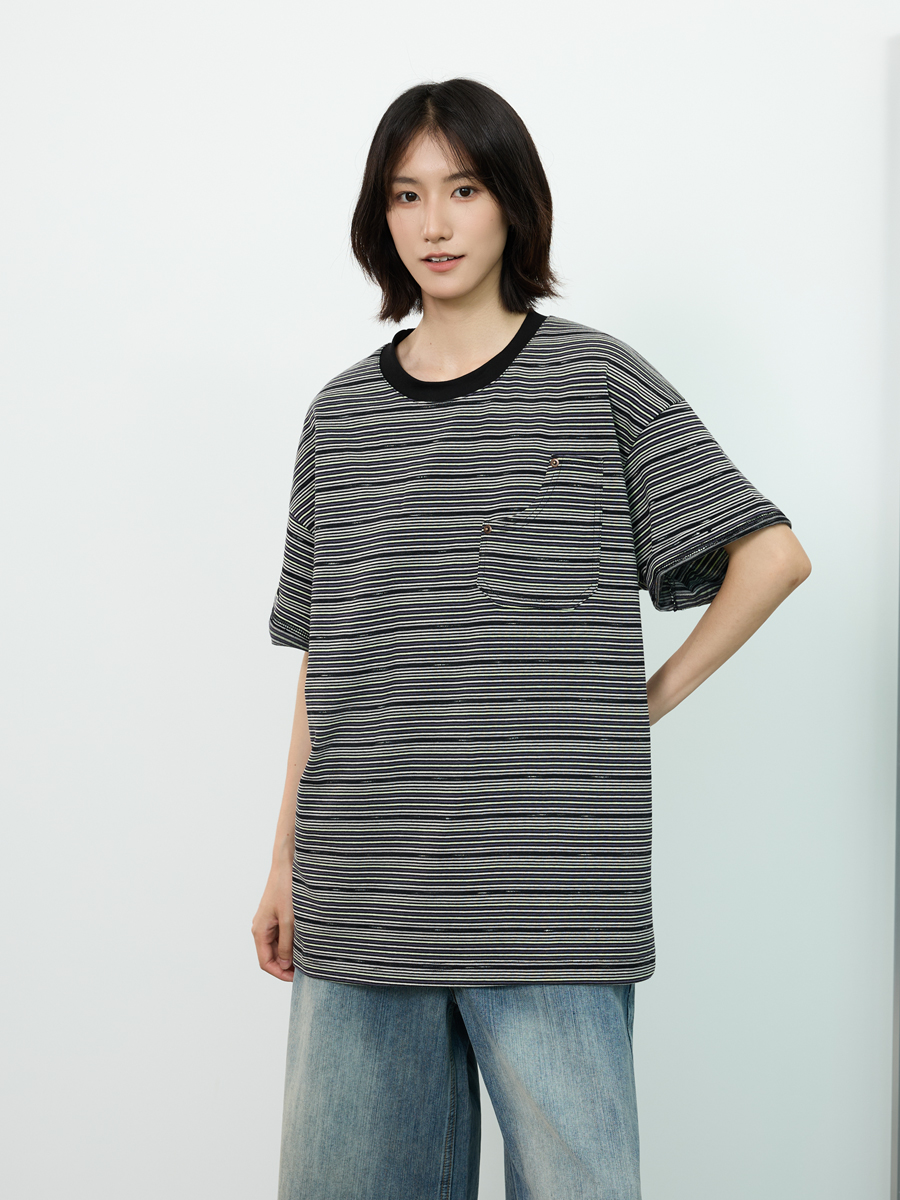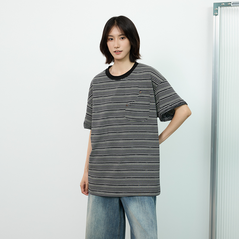 Unisex Retro Striped Short Sleeve Neck, Cutout Pocket Y2k to – Outfit Ideas