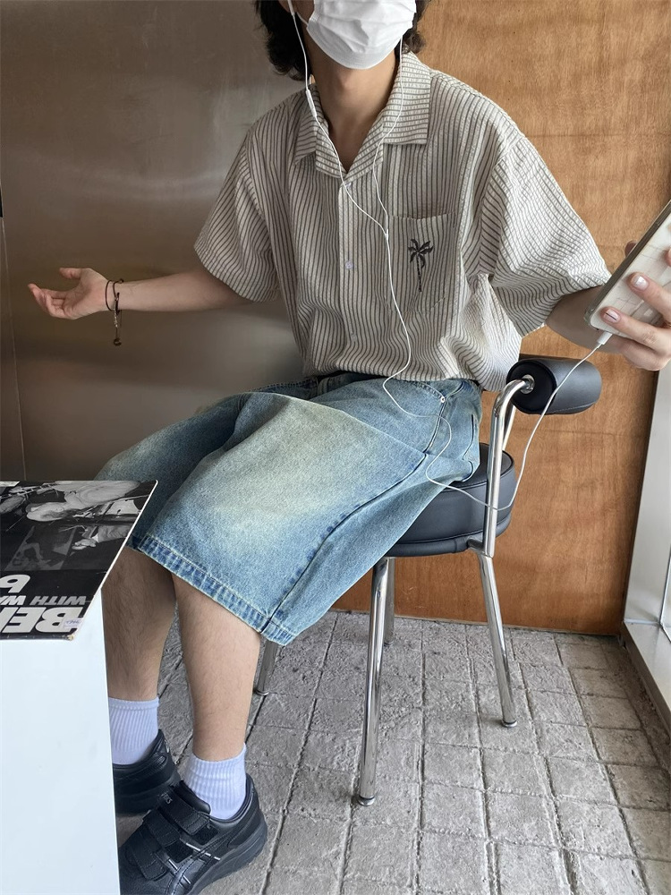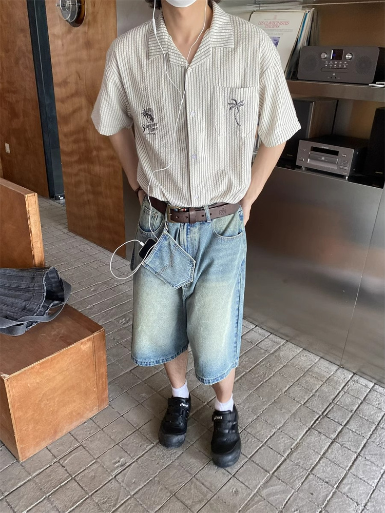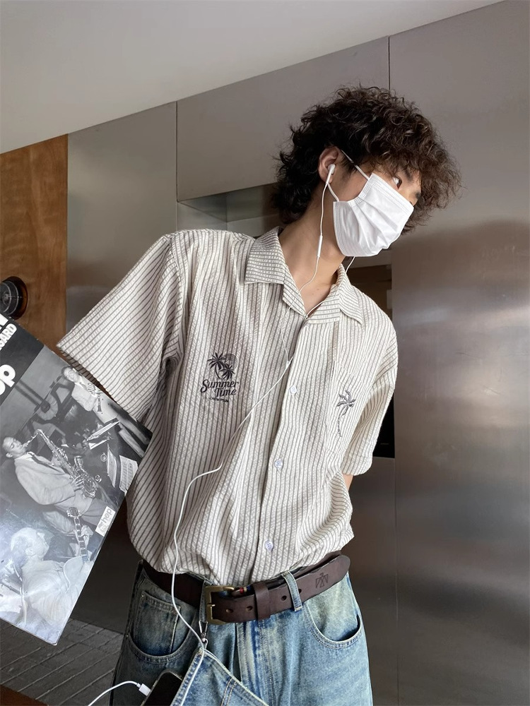Unisex Cuban Collar Striped Short Sleeve Shirt Coconut Tree – Outfit Ideas