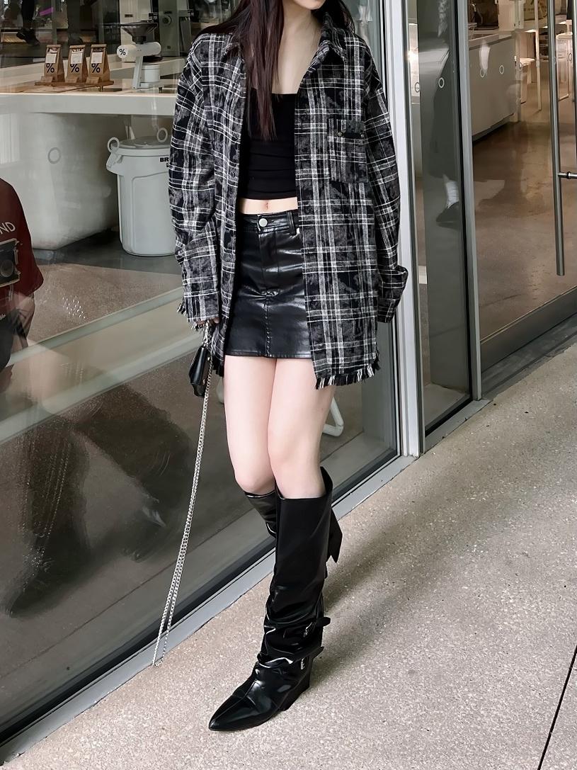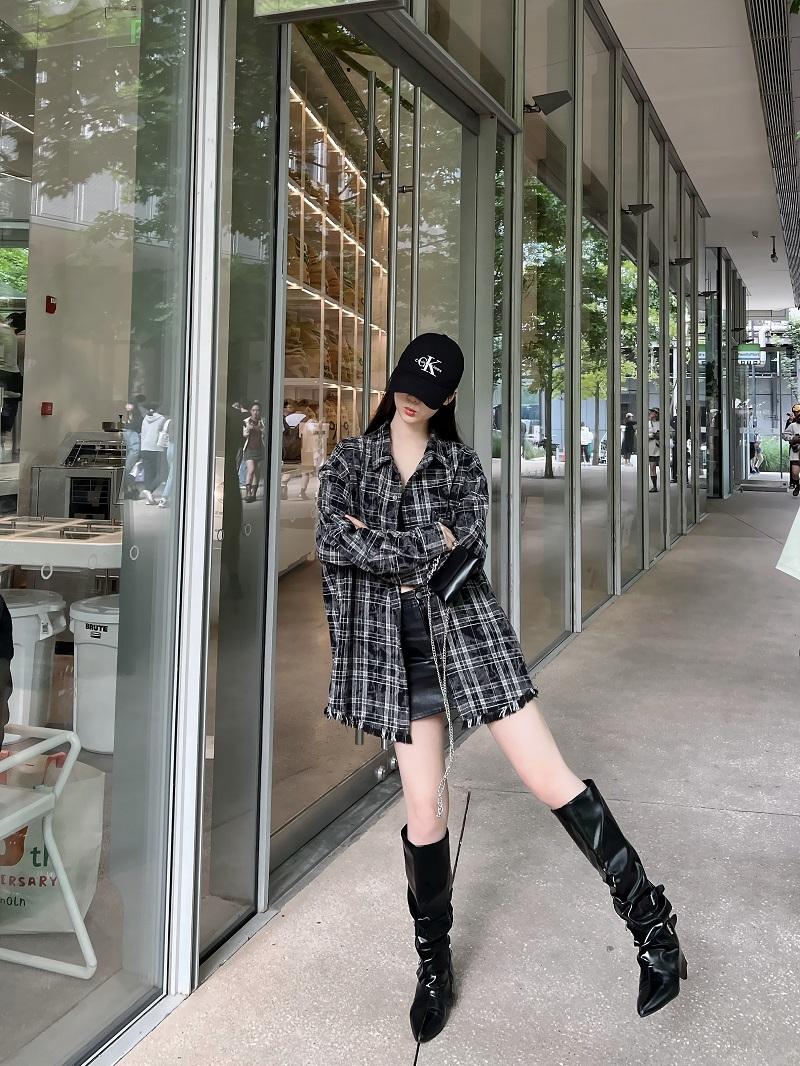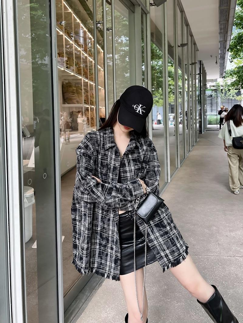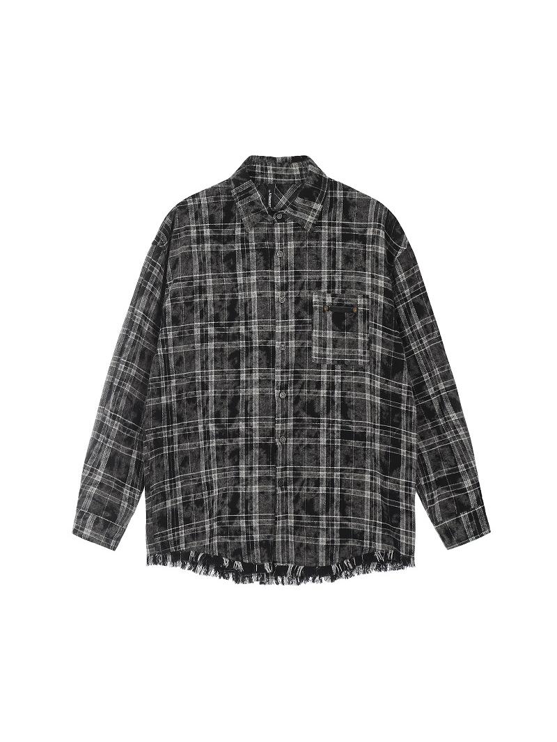 Unisex Retro Plaid Fringe Long Sleeve Shirt Loose Fit Couple – Outfit Ideas