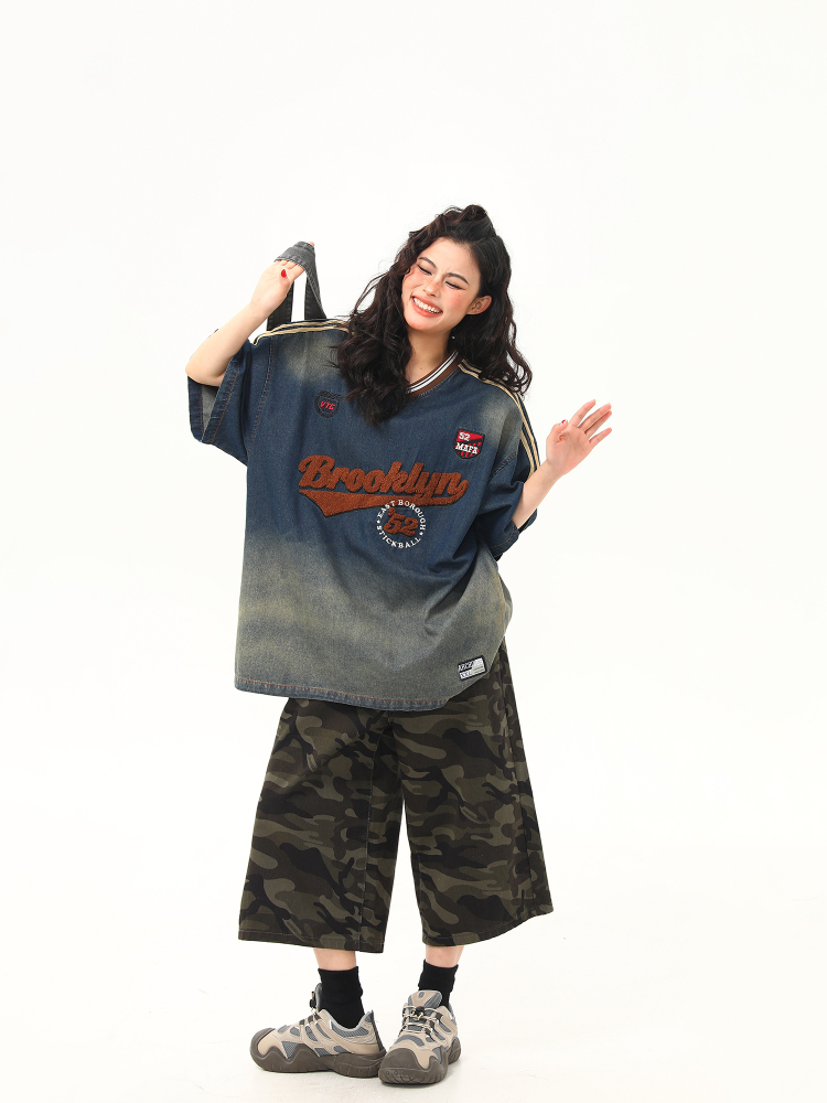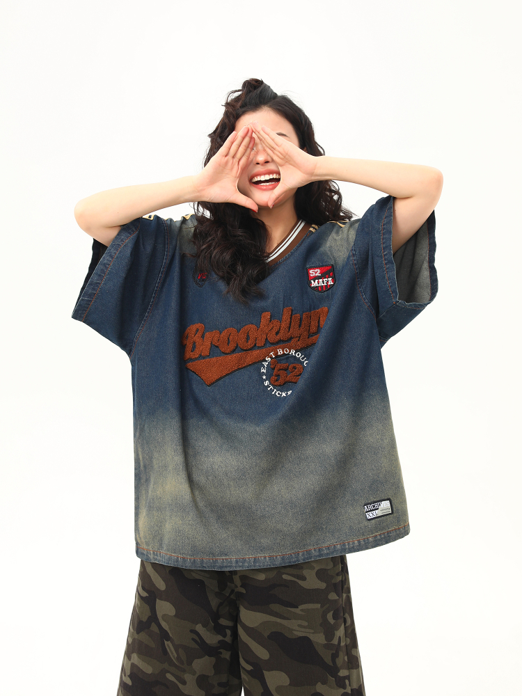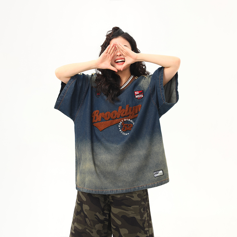 Elevate your summer wardrobe with our V-Neck Washed Denim Short Sleeve T-Shirt, the perfect blend of vintage American college style and modern comfort. Crafted from soft, breathable fabric, this tee features a flattering fit that accentuates your silhouette while offering unrivaled ease of movement. The unique washed denim finish adds a touch of laid-back sophistication, making it an essential piece for any casual occasion. Don’t miss out on this 2025 summer fashion must-have—add it to your cart today!