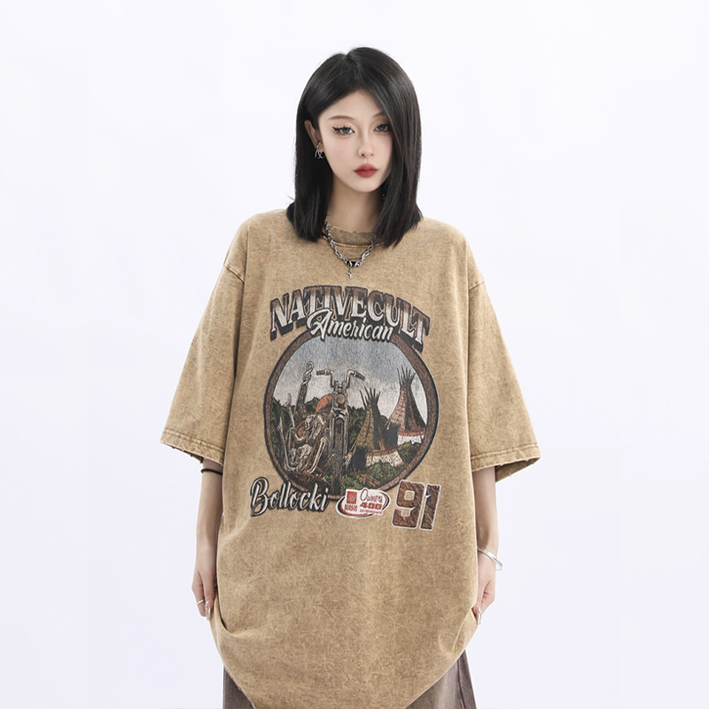 Elevate your casual wardrobe with our Vintage American Retro High Weight Short Sleeve Women’s T-Shirt, crafted from a washed heavy fabric for a unique, lived-in feel. This high street style tee offers a relaxed fit that flatters every body type, making it perfect for layering or wearing solo. Embrace the timeless appeal of retro fashion while enjoying the durability and comfort of premium materials. Don’t miss out on this essential piece—add it to your cart today and redefine your everyday style!