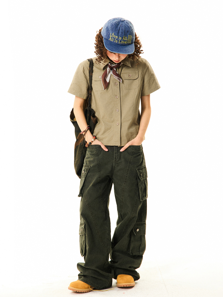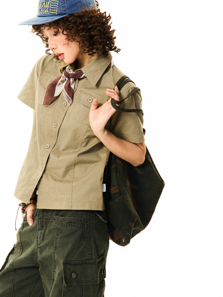 Elevate your summer wardrobe with our Vintage American Workwear Short Sleeve Shirt for Women, designed for a flattering waist-defining slim fit that effortlessly enhances your silhouette. This versatile top features classic workwear details, making it perfect for both casual outings and stylish layering. Crafted for comfort and style, it’s the ultimate addition to your everyday attire. Don’t miss out on this timeless piece—add it to your cart today!