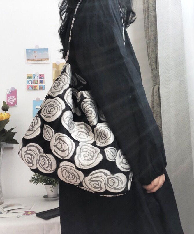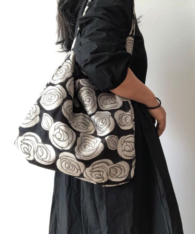 Vintage Black Rose Jacquard Organza Satchel Handbag