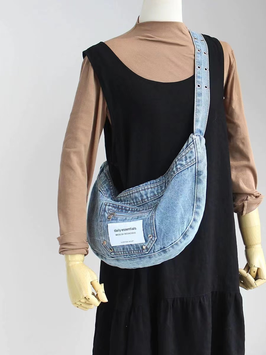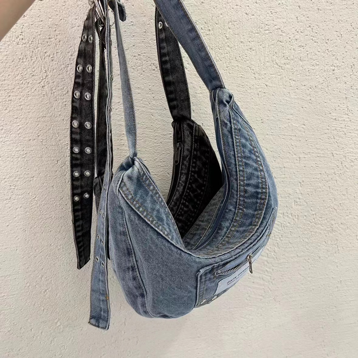 Vintage Blue Washed Denim Cowboy Half Moon Dumpling Bag Shoulder Crossbody Underarm Bag Cool Y2K High-quality product featuring prom dresses, spring outfits, business casual outfits and more. Modern design that fits the latest trends. Premium materials ensure durability and comfort. Order now for special offers! Product designed with attention to every detail. Suitable for all occasions and personal styles.