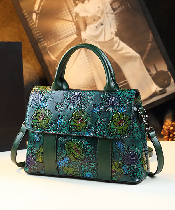Vintage Brown Flower Embossed Solid Durable Women Handbags