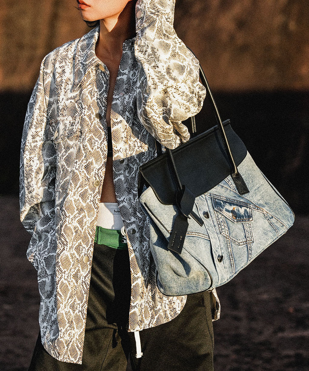 This bag is made of fine denim fabric.