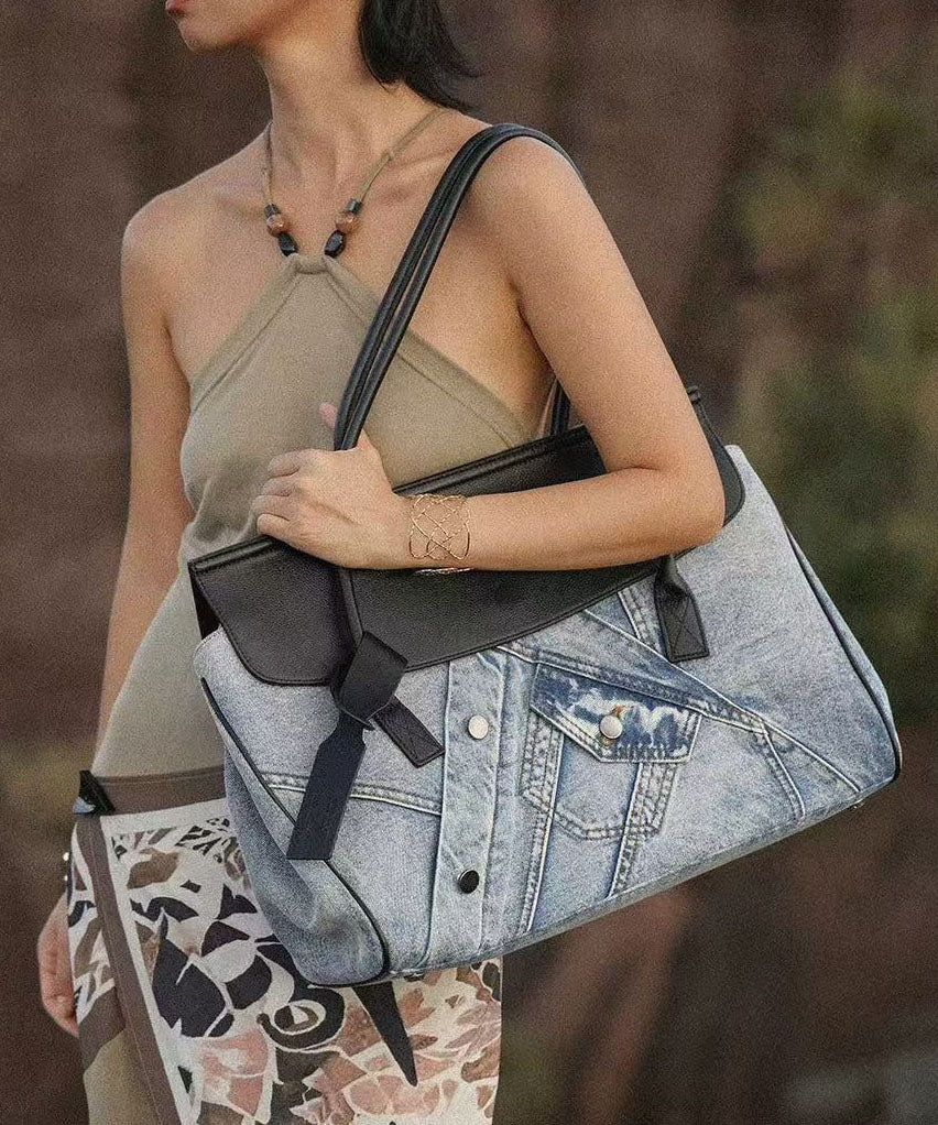 Vintage Denim Blue Patchwork Leather Large Capacity Shoulder Bags