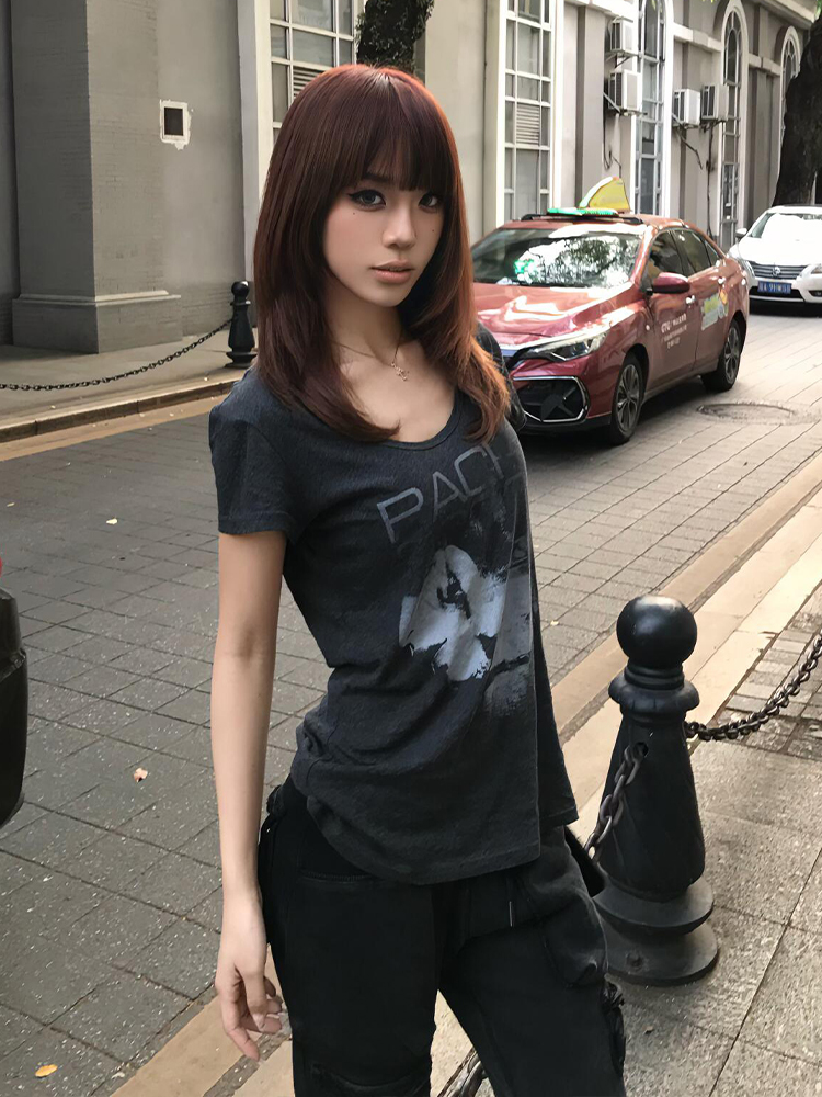 Elevate your summer wardrobe with our Vintage-Inspired Big Collar T-Shirt for Women, featuring an eye-catching portrait print that adds a touch of artistic flair. This trendy gray top boasts short sleeves and a loose fit, ensuring ultimate comfort while keeping you stylish on the high street. Perfect for pairing with shorts or jeans, it’s a versatile piece that transitions effortlessly from casual outings to chic gatherings. Don’t miss out on this must-have summer essential—add it to your cart today!