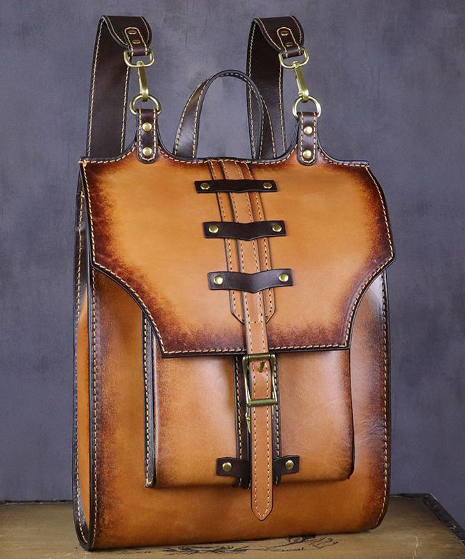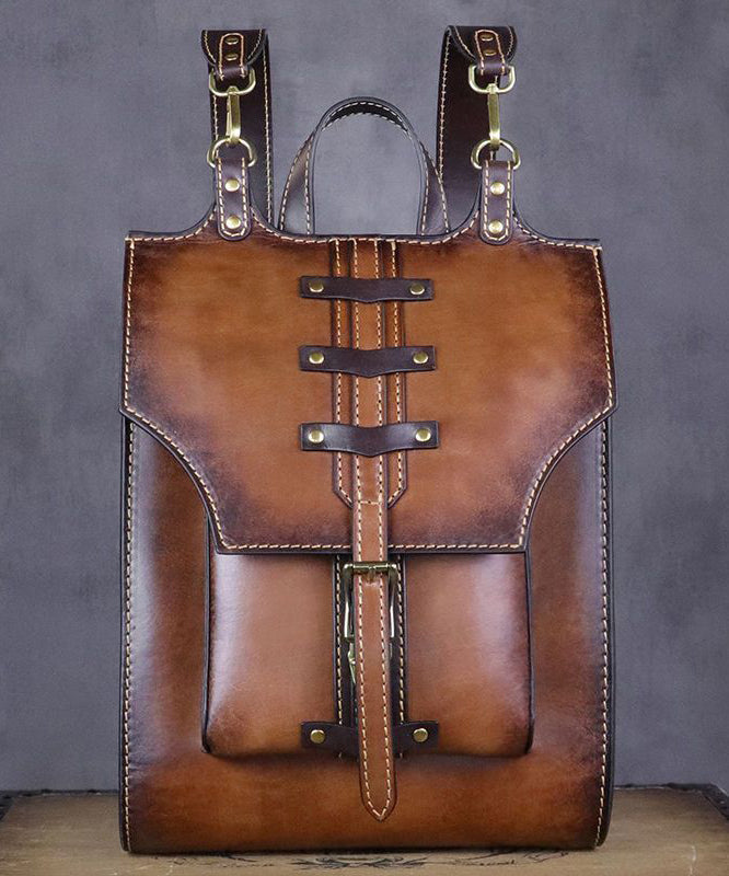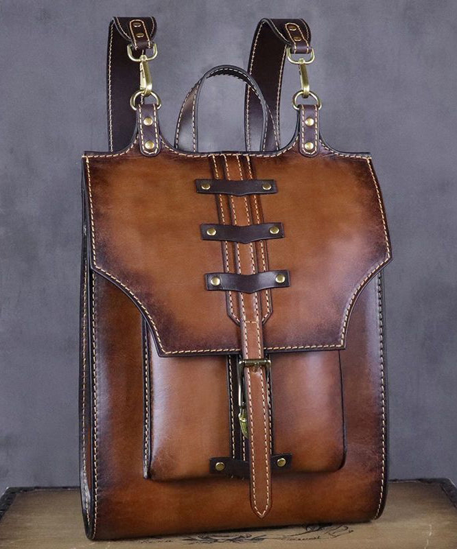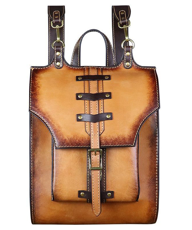 Vintage Khaki High-capacity Calf Leather Backpack Bag