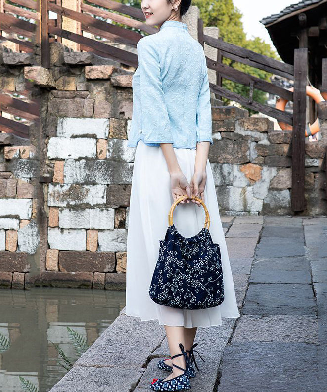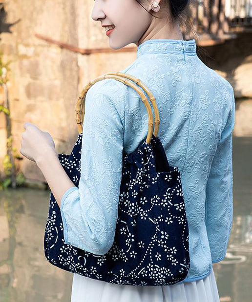Vintage Navy Print Chinese Style Cotton Tote Handbag Satchel Bag Handbag