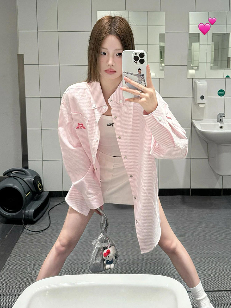 Elevate your spring wardrobe with our Vintage Pink Striped Shirt for Women, featuring adorable dog embroidery that adds a playful touch to your style. This loose-fitting jacket not only offers a relaxed silhouette reminiscent of 90s fashion but also provides essential sun protection for those sunny days out. Perfect for layering or wearing on its own, this versatile top is a must-have for any fashionable woman. Don’t miss out—add this charming piece to your cart today!