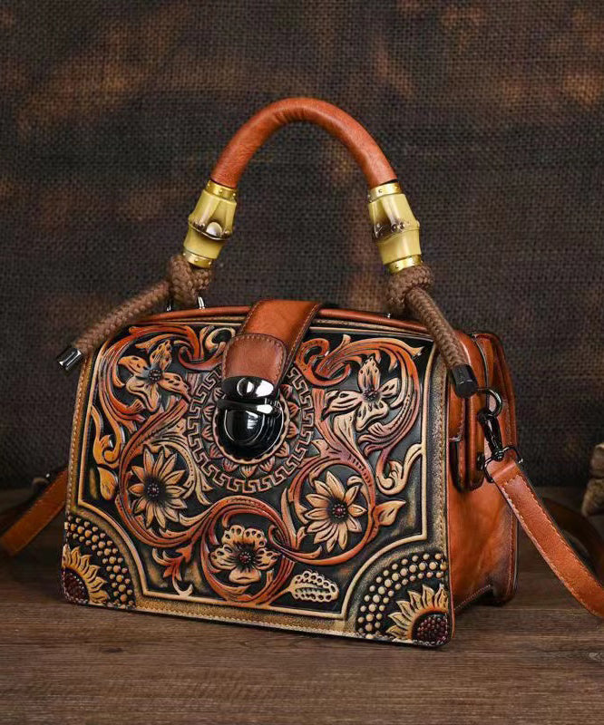 Vintage Red Original Bamboo Joint Splicing Embossed Handbag