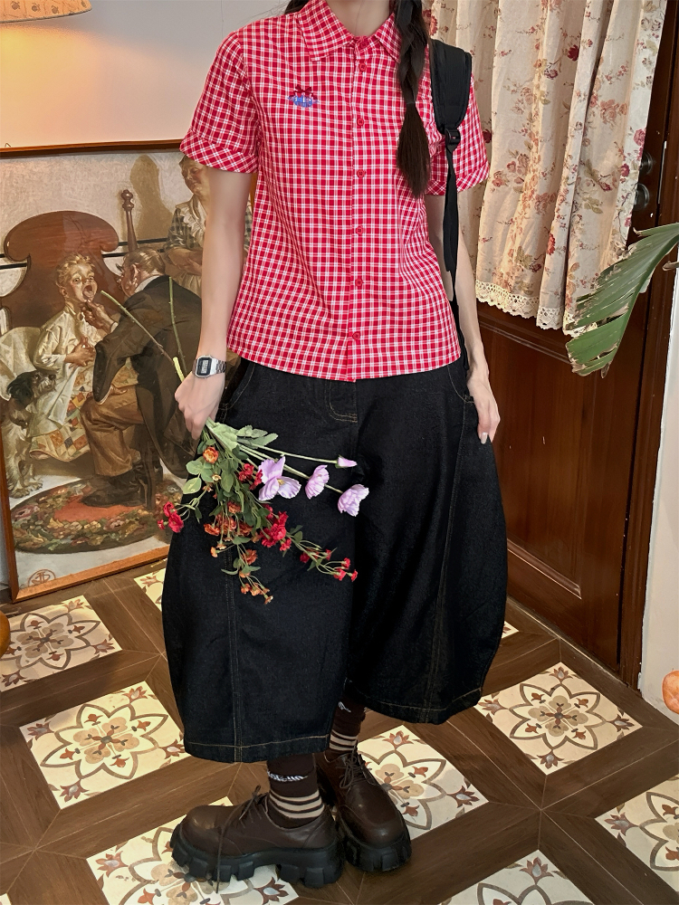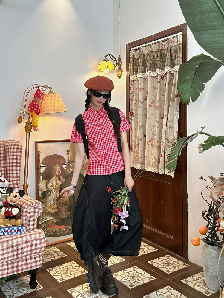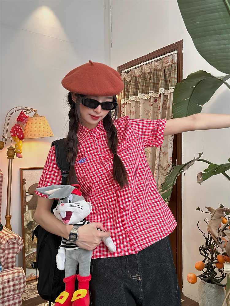 Vintage Red Plaid Short Sleeve Shirt Lapel Summer Slim Fit Casual Top pired High-quality product featuring prom dresses, spring outfits, business casual outfits and more. Modern design that fits the latest trends. Premium materials ensure durability and comfort. Order now for special offers! Product designed with attention to every detail. Suitable for all occasions and personal styles.