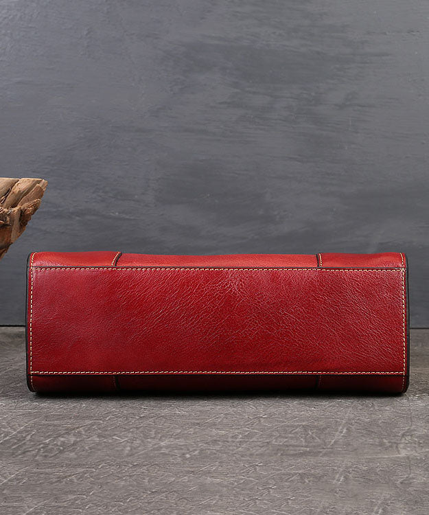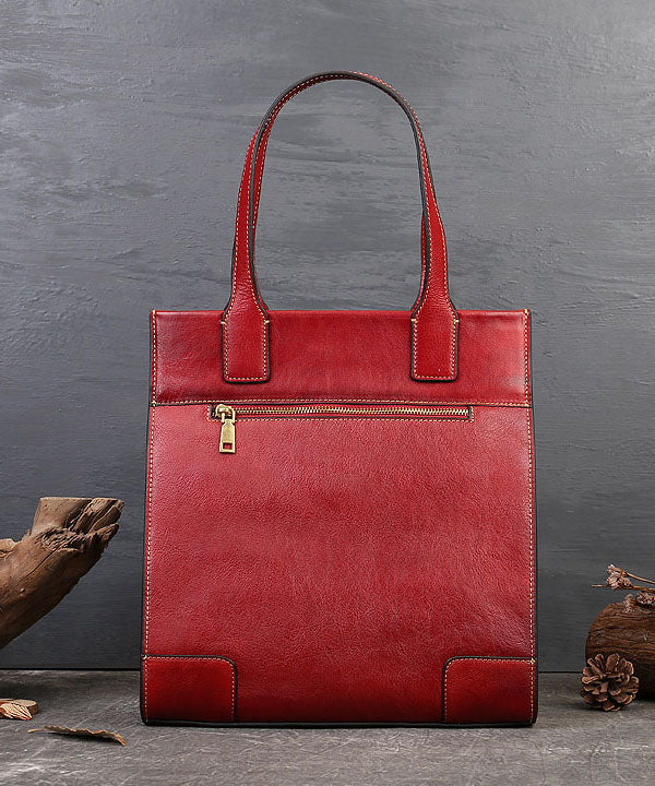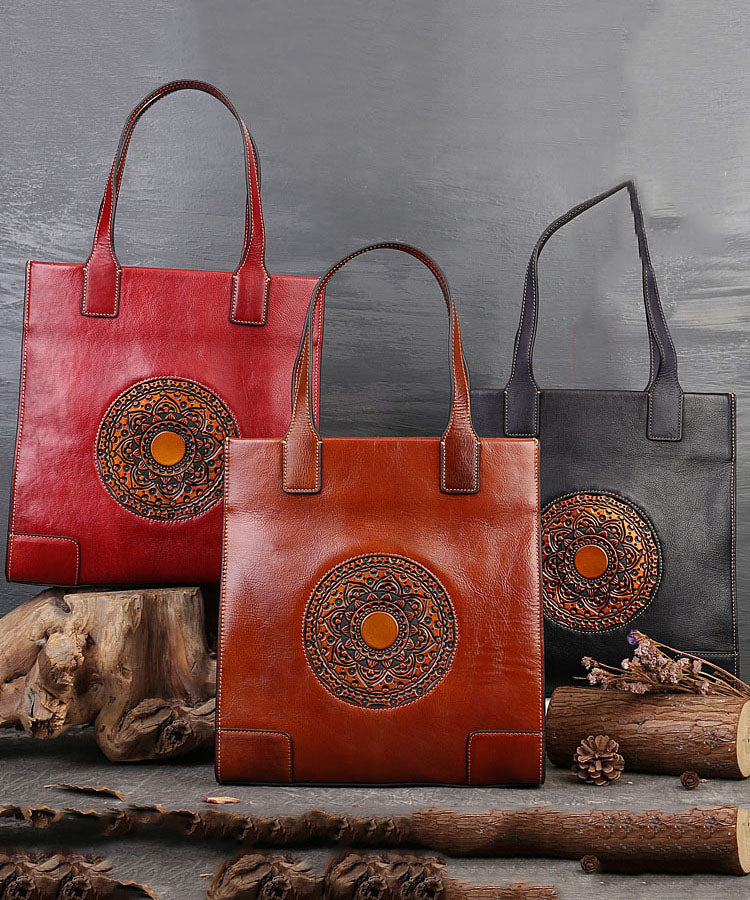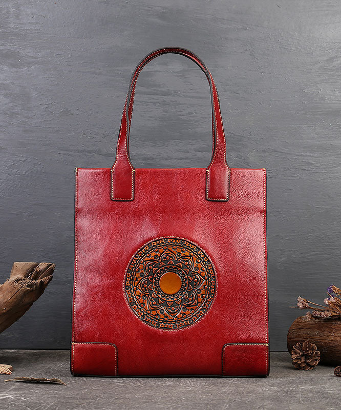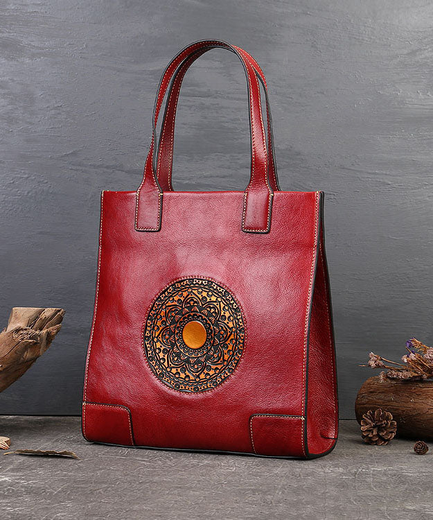 Vintage Red The Sunflowers Jacquard High-capacity Calf Leather Tote Handbag