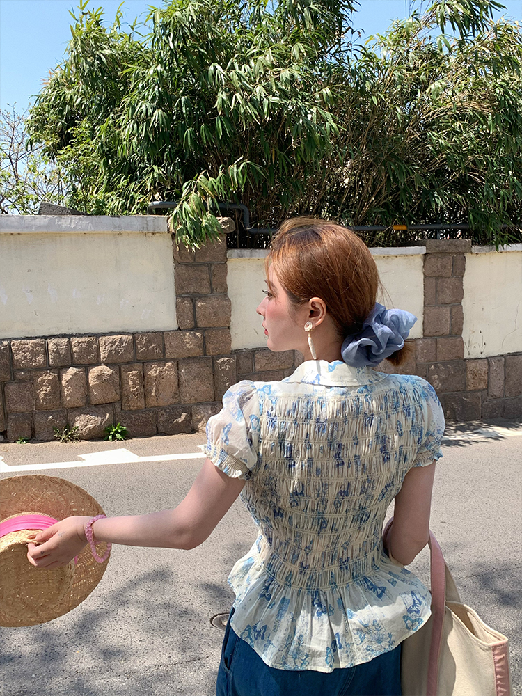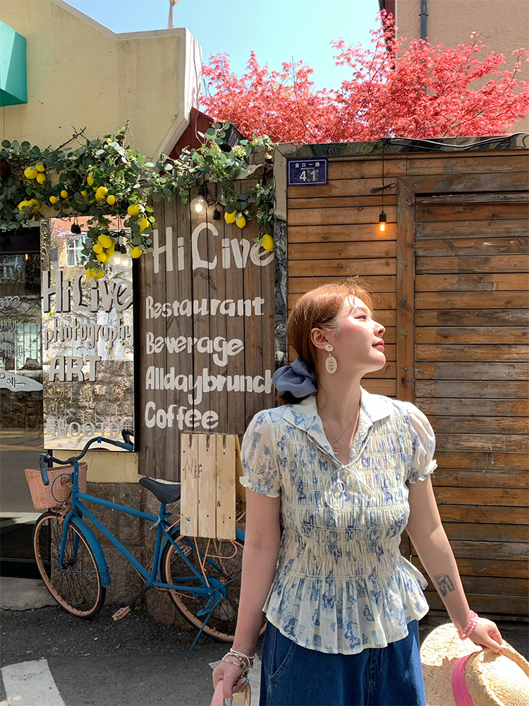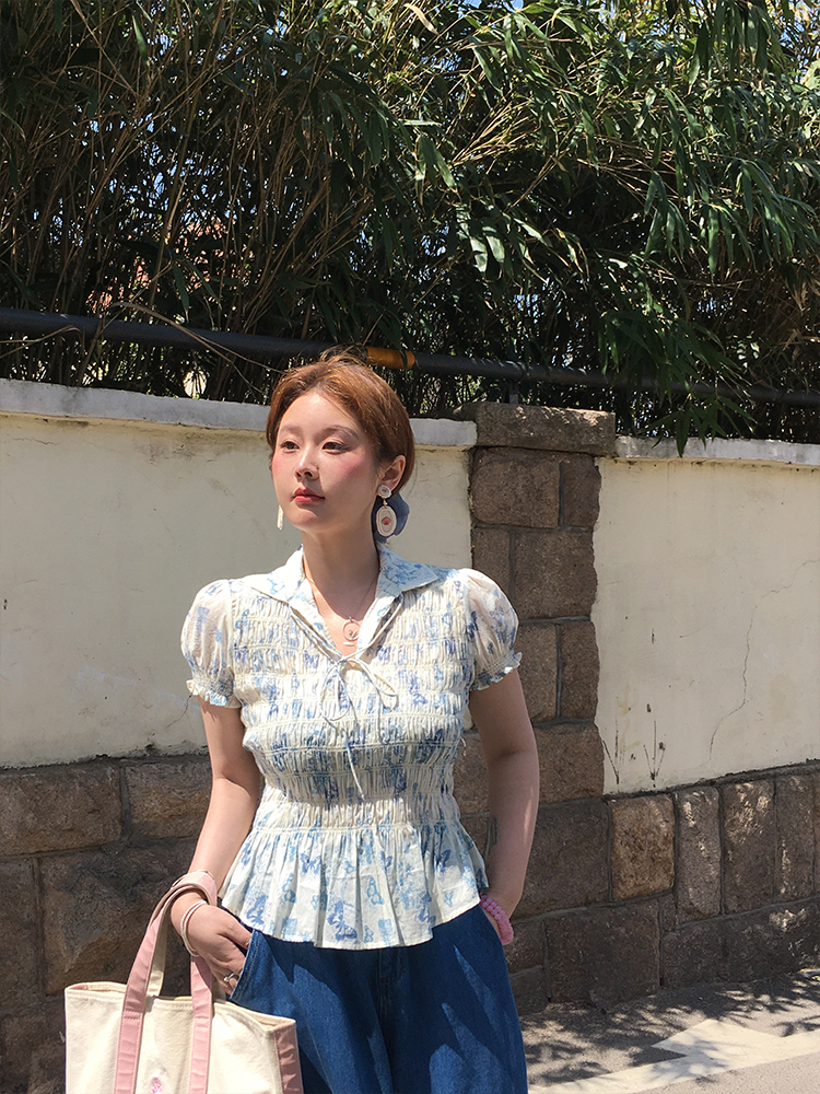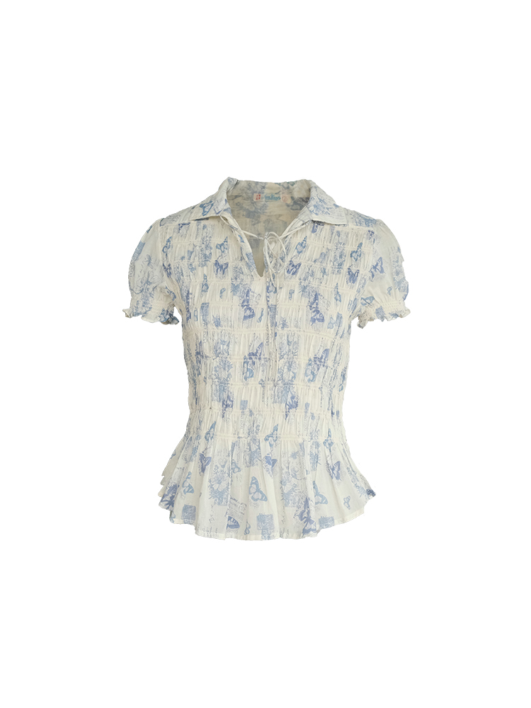 Vintage Retro Butterfly Floral Short Sleeve Shirt Women Summer Loose Fit WaiDrawstring Collared Top, Y2K High-quality product featuring prom dresses, spring outfits, business casual outfits and more. Modern design that fits the latest trends. Premium materials ensure durability and comfort. Order now for special offers! Product designed with attention to every detail. Suitable for all occasions and personal styles.