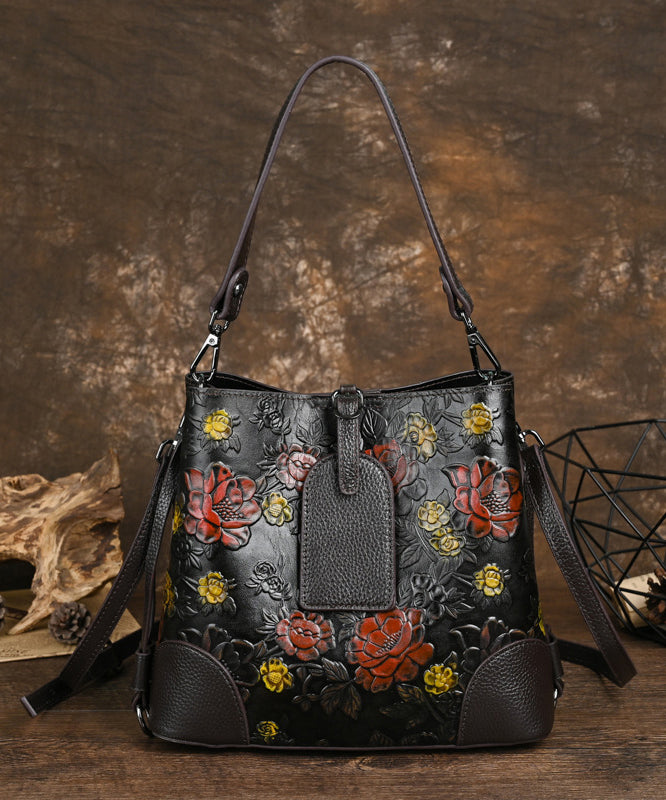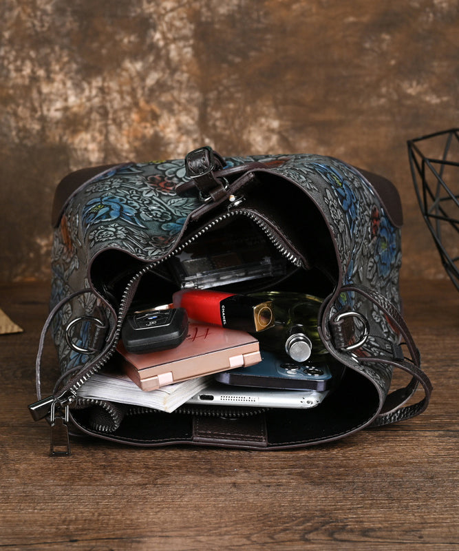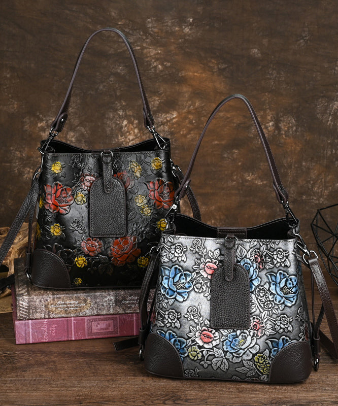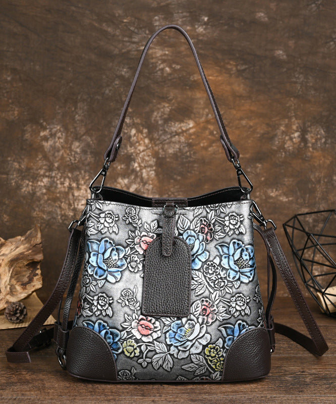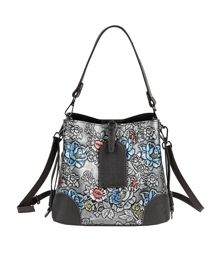 Vintage Silver Embossed Durable Calf Leather Messenger Bag