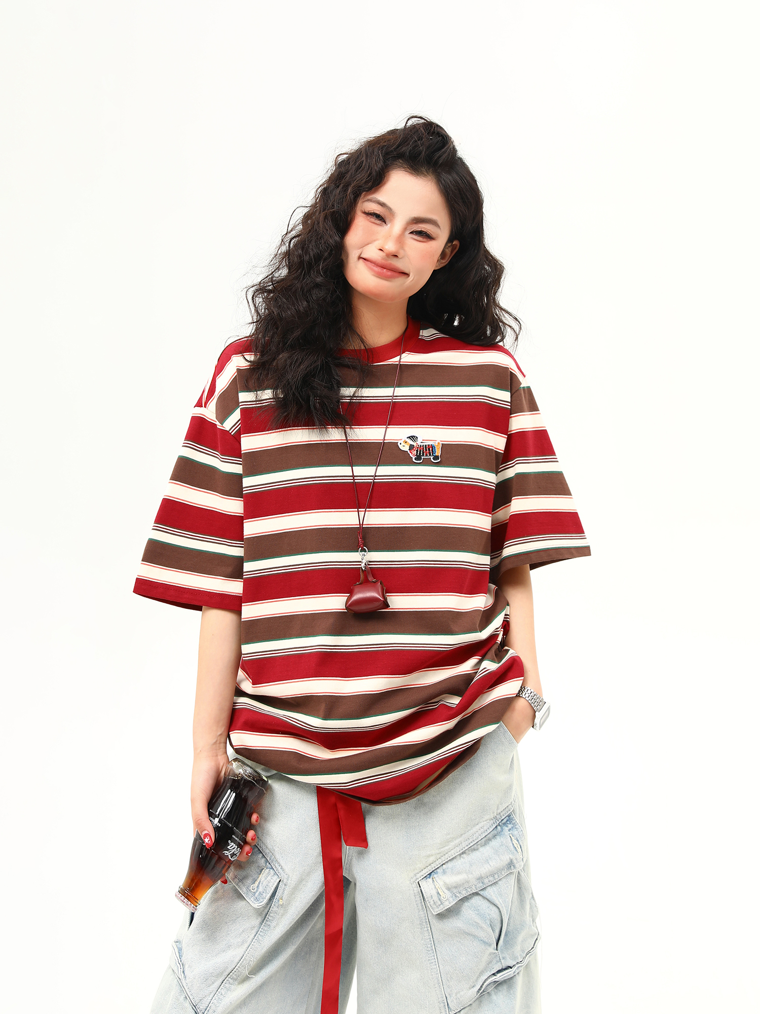 Vintage Striped Sausage Dog Embroidered Short Sleeve Women Loose Fit Summer Tee, Casual High-quality product featuring prom dresses, spring outfits, business casual outfits and more. Modern design that fits the latest trends. Premium materials ensure durability and comfort. Order now for special offers! Product designed with attention to every detail. Suitable for all occasions and personal styles.