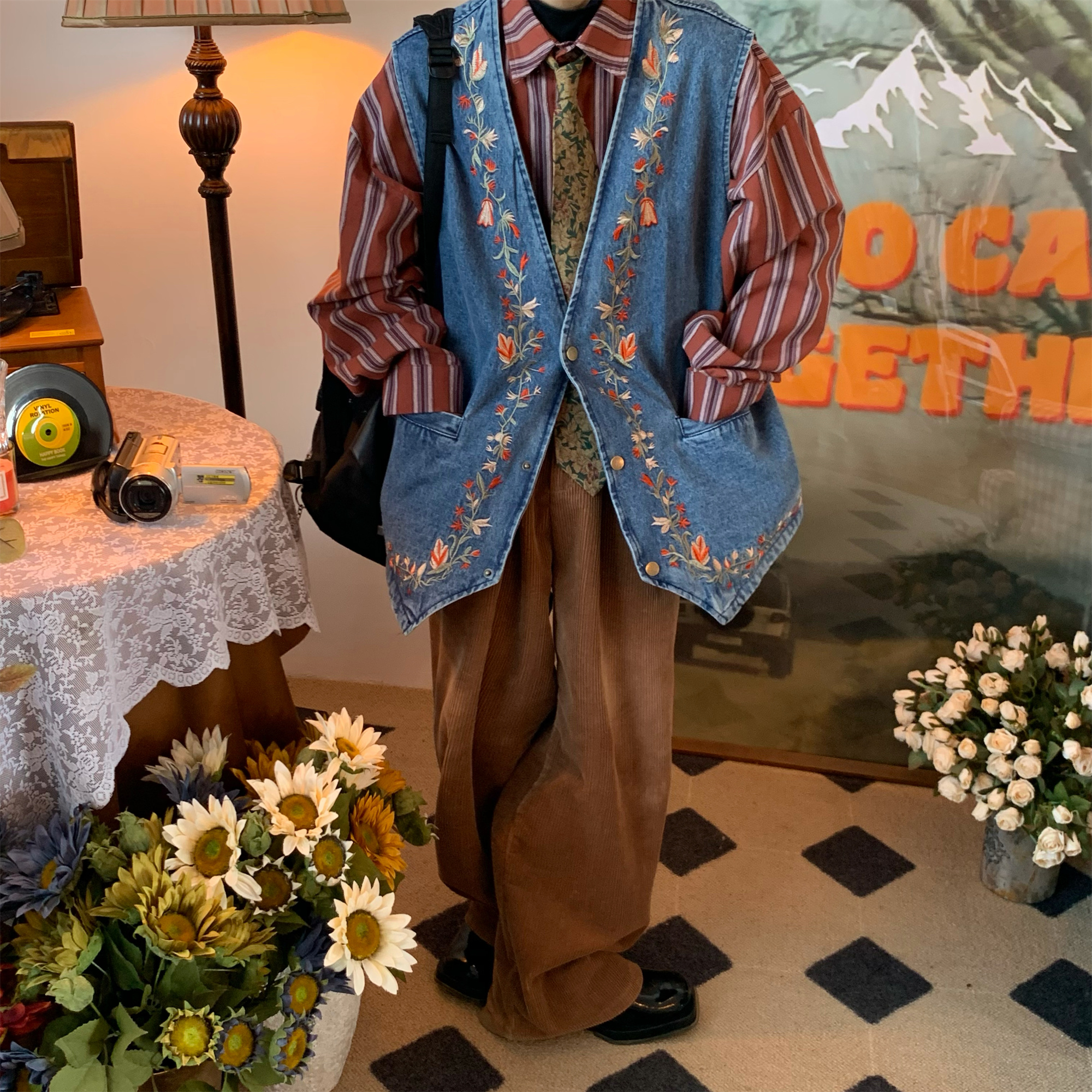 Embrace retro charm with our Vintage Washed Distressed Floral Embroidery Vest, a must-have sleeveless jacket perfect for autumn layering. This versatile 90s-inspired piece features intricate floral embroidery and a relaxed fit that adds a touch of effortless style to any outfit. Ideal for both casual outings and chic gatherings, elevate your wardrobe today and enjoy the perfect blend of comfort and fashion. Add to your cart and step out in style!